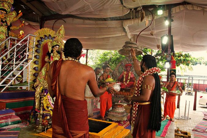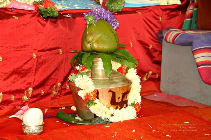 | + | File:20170927_Photo_109_10VOTanGBtT7YKmLKzYEIM5qhB0fCCvdK.jpg | Devi is being invoked into the Kalash during the auspicious occassion of Navaratri | ||