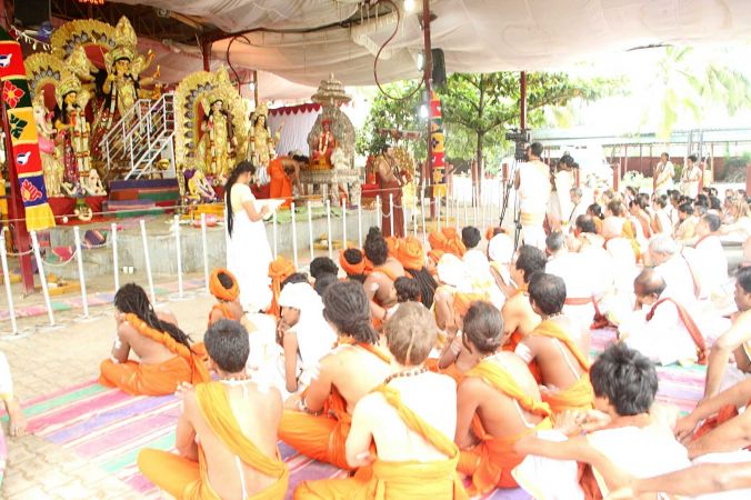 | + | File:20170927_Photo_155_1DbyIoYQ_9RcyZNv5UTHPUtJ3Ykz-vc7k.jpg | Delegates and sanyasis participating in the Navaratri puja | ||