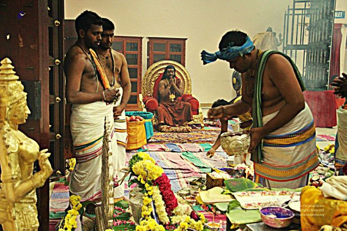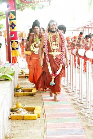 | + | File:20170927_Photo_173_1tksFJHv62fxDjUNE84xdLMRRqMFTNqqy.jpg | Balasanths of Nithyananda order preparing the Kailaya Vathiyam for the arrival of HDH Nithyananda Paramashivam at the Devalaya | ||