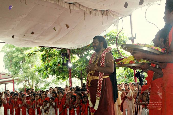 | + | File:20170927_Photo_177_1Y_Q8LjadwQjJPNrTNkHGqrGyTaIJWj1-.jpg | Balasanths awaiting to welcome HDH Nithyananda Paramashivam with Purna Khumba and Kailaya Vathiyam at the Nithyananda Devalaya | ||