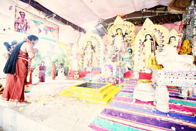 | + | File:20170927_Photo_123_162vSwzbe_sEaSpoHBsIvU7vf4aaBpIVB.jpg | Navami Puja Bali Dhan - Bali means 'tyag'or sacrifice.One is to give up or sacrifice all vices and sensual pleasure that one delights in | ||