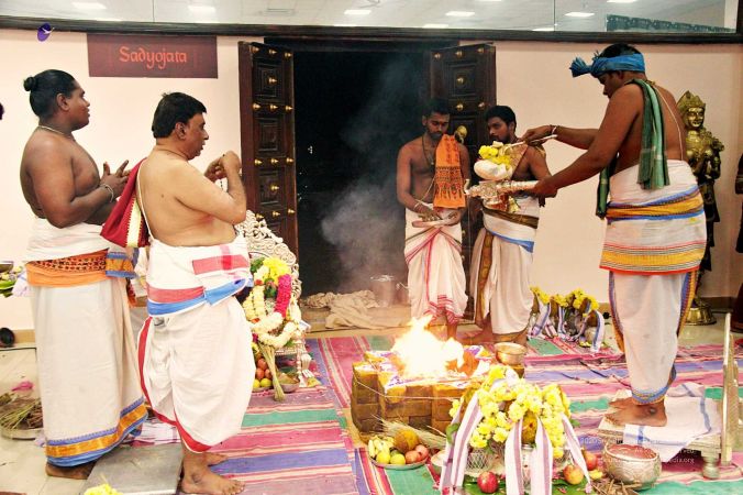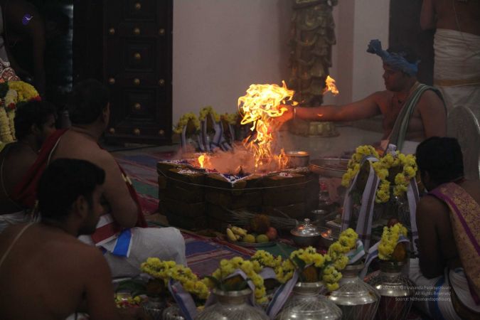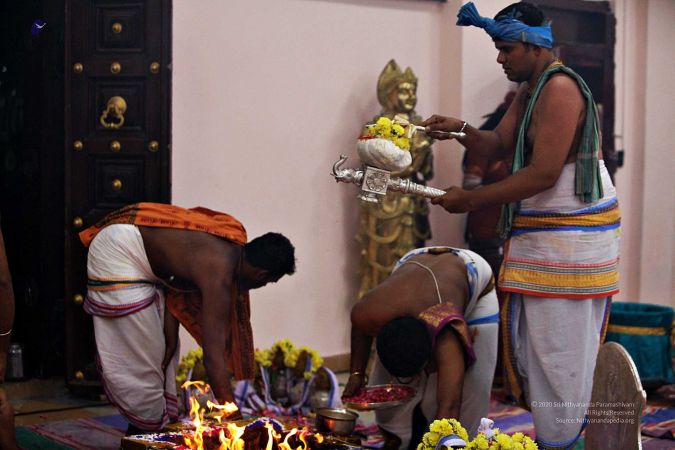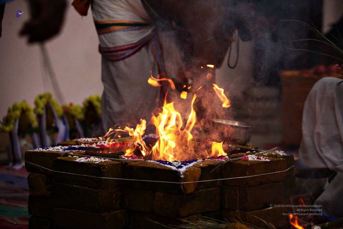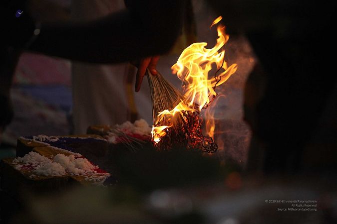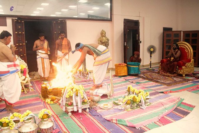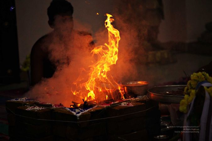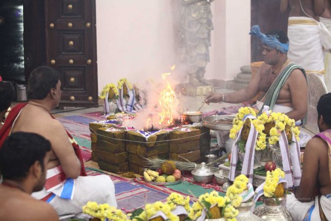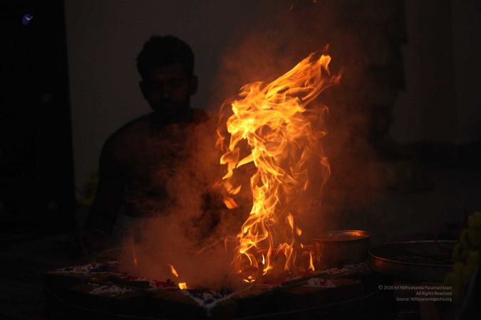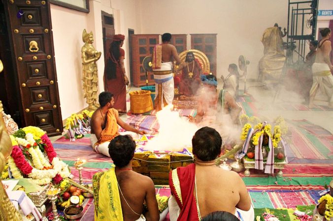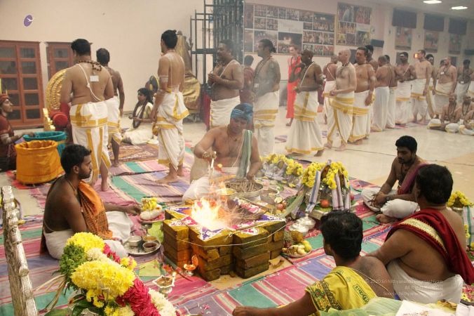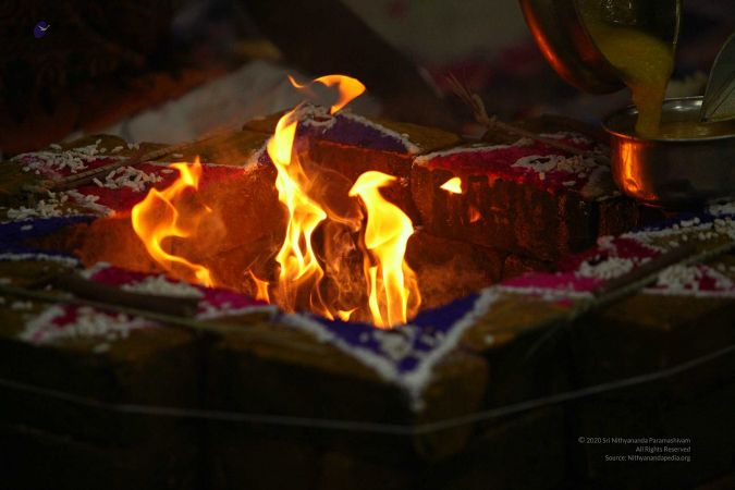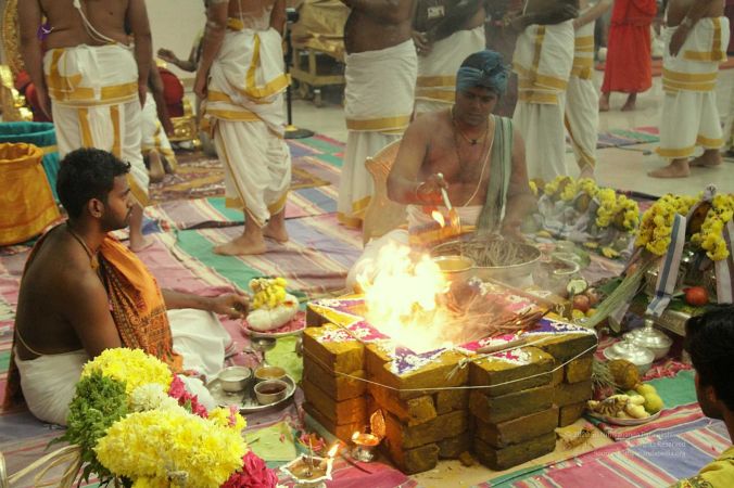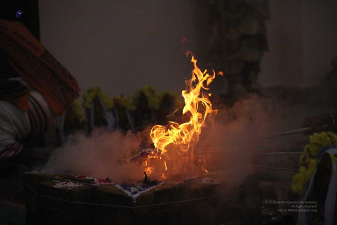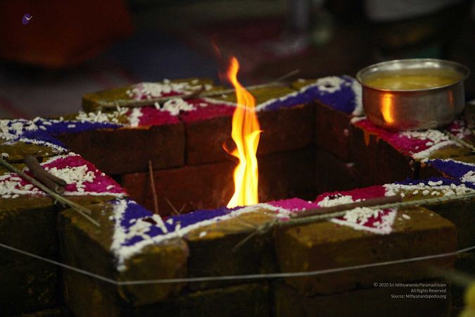 | + | File:20170927_Photo_116_1pARfZltDZnwsc08HT5fPm4DXTmDrTmDN.jpg | Homa Kunda is a fire-altar where offerings are given to Lord Agni. | ||