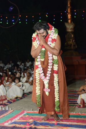 The participants started the day with a yoga session.Following an initiation into Visesha Deeksha to cleanse the bio memory and muscle memory there was a Guru puja demo for the participants to learn how to offer puja everyday. During the Chidambara Mandala process the participants were made to sit forming a sacred powerful geometrical shape and initiated by Swamiji to break all addictions. | The participants started the day with a yoga session.Following an initiation into Visesha Deeksha to cleanse the bio memory and muscle memory there was a Guru puja demo for the participants to learn how to offer puja everyday. During the Chidambara Mandala process the participants were made to sit forming a sacred powerful geometrical shape and initiated by Swamiji to break all addictions. | ||