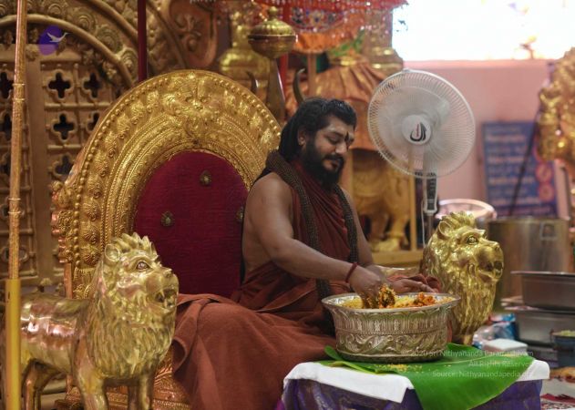 Maheshwara Puja involves the offering of food to the Master - HDH Nithyananda Paramashivam along with His monastic disciples