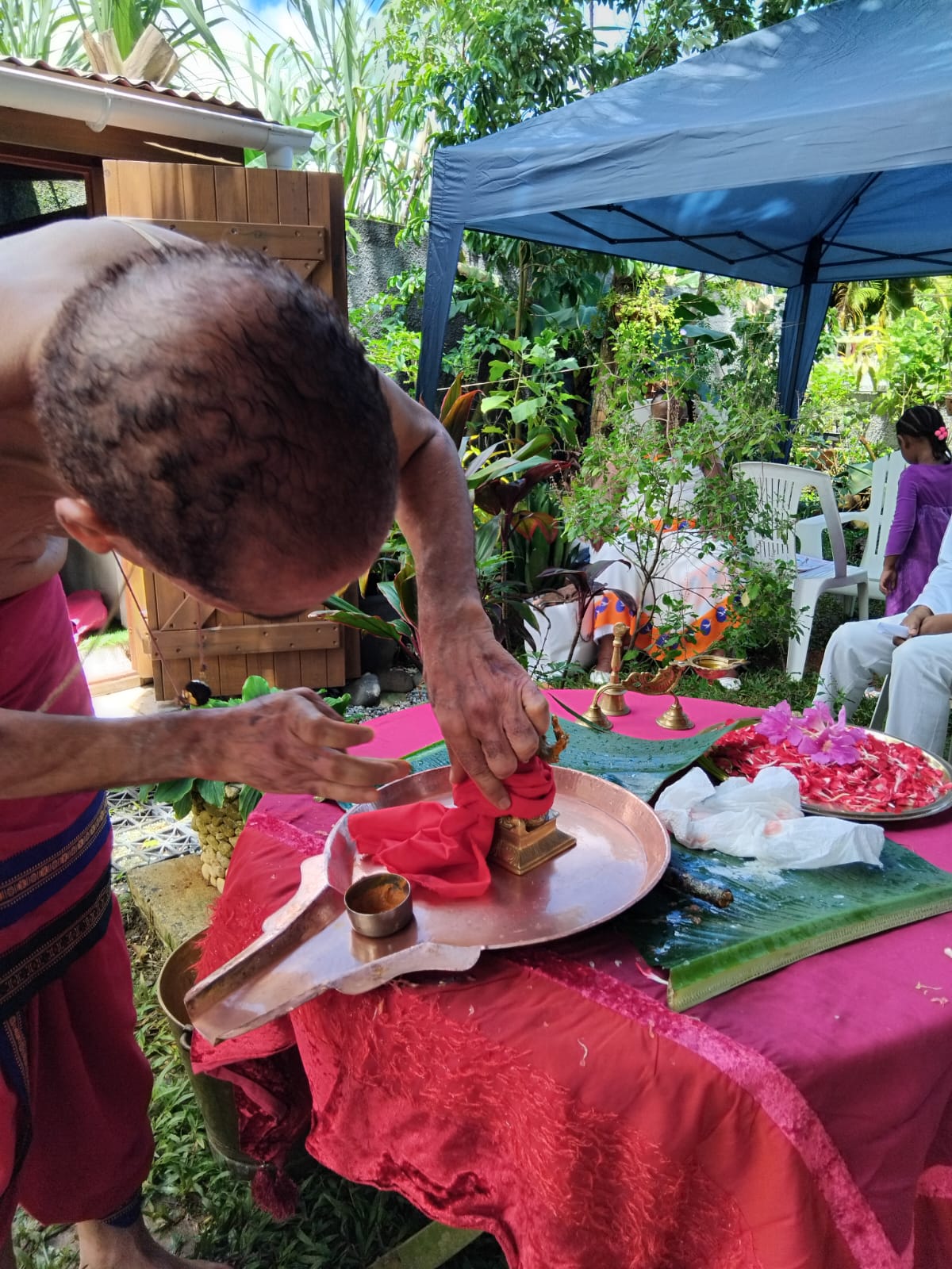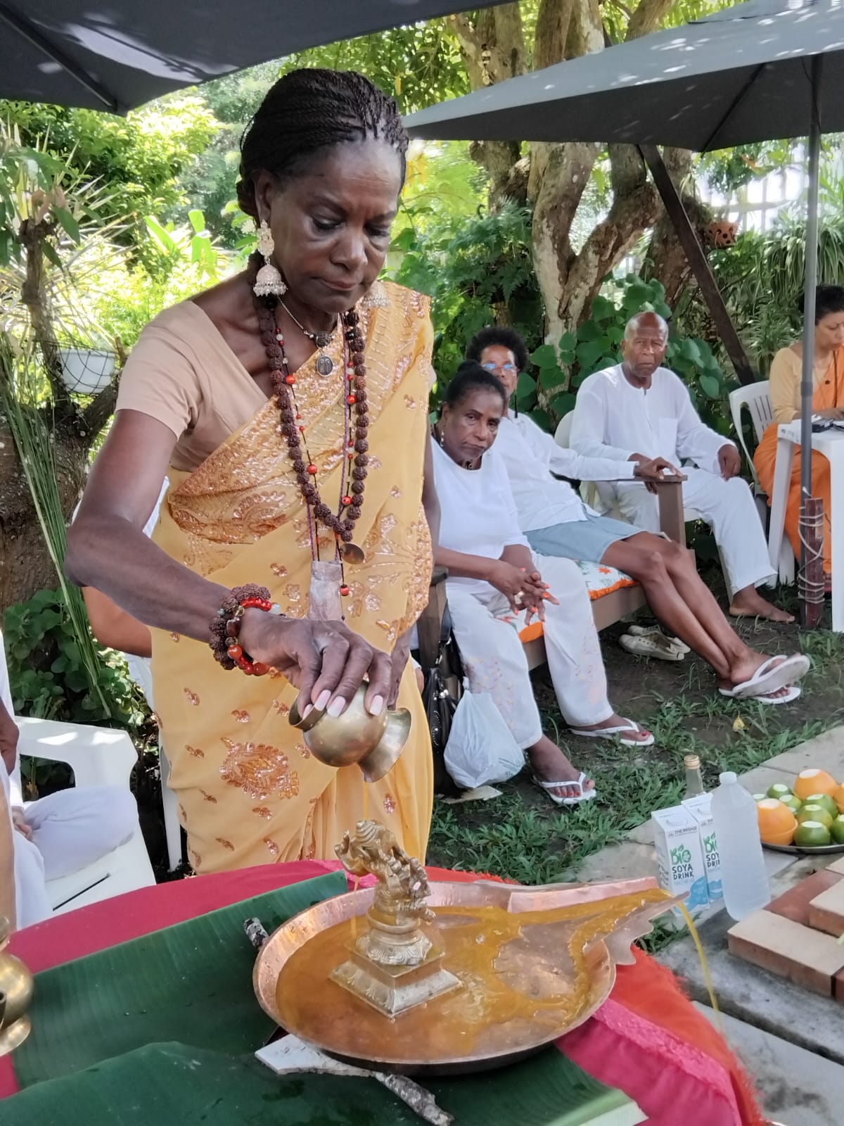 | − | The | + | The event saw substantial participation, with a total of 33 devotees blessed by the divine energy of the ceremony. Specifically, 25 people attended the rituals live within the temple space in Guadeloupe, while an additional 8 participants joined virtually via Zoom from Guadeloupe and France, underscoring the cross-continental spiritual connection fostered by KAILASA. The smooth execution of the complex rites was supported by 2 dedicated volunteers, whose selfless service ensures the continuous flow of divine grace to the region. This continued dedication ensures the revival of ancient enlightened Sanatana Hindu civilization and the preservation of ancient indigenous traditions across the Caribbean. |