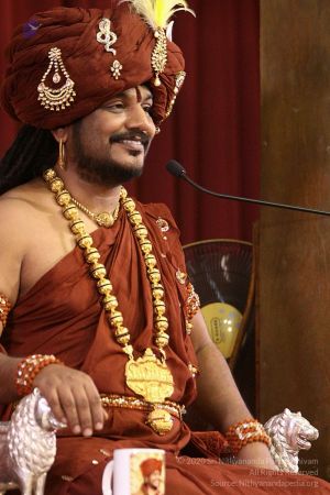 | + | And with this I bless you all. Let’s all radiate with Integrity, Authenticity, Responsibility, Enriching, Living Shuddhadvaita Saivam Sadashivoham, the Eternal Bliss Nithyananda. | ||