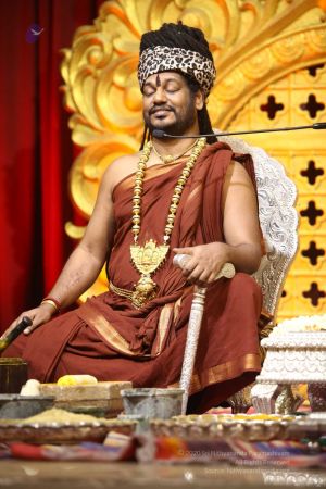 | + | File:20170910_Photo_1172_1BNJ9GdX1yDTMQrq-1Qfe7QUSlnfRRedQ.jpg | HDH Nithyananda Paramashivam offering prayers in a deep bliss space to deities and guru parampara on the completion of aushadha process | ||