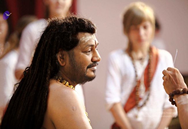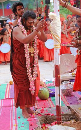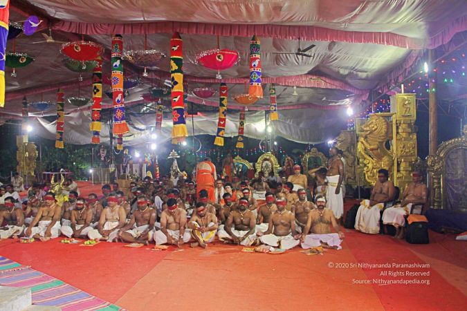 | + | File:20171001_Photo_140_1HzDVN7GIm0XDx0Y2LgH3Y_rjpeeSWU_0.jpg | HDH Nithyananda Paramashivam performing the panda kaal ritual puja at the Nithyanandeshwara Sadashiva Temple to start preparations for the Nithyanandeshwara Brahmotsavam | ||