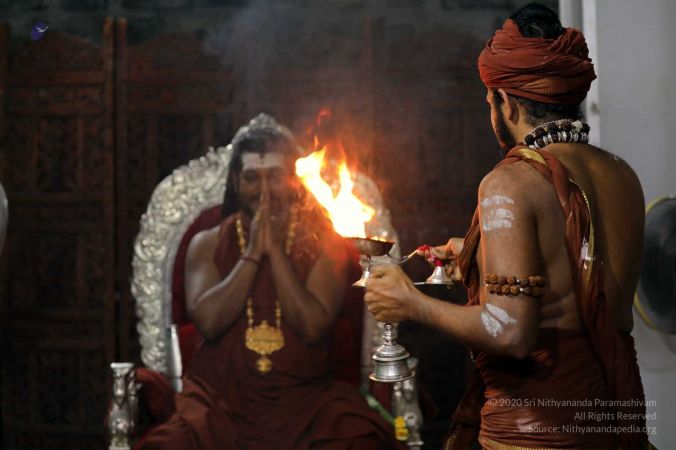 The Supreme Pontiff of Hinduism, Jagatguru Mahasannidhanam, His Divine Holiness, Bhagavan Nithyananda Paramashivam, is the visionary through whom this whole revival of KAILASA is made possible. On this, Day 26 of Mahasadashivoham and Day 8 of Chittirai Brahmotsavam, the Pattabhishekam or coronation ceremony of Goddess Meenakshi took place. Several rituals and Abishekams were performed to the crown of the Deity, followed by Deeparadhana, Nithya Puja and the Darshan of His Divine Holiness.