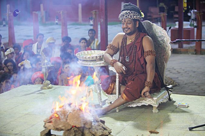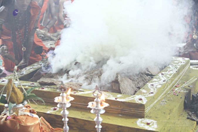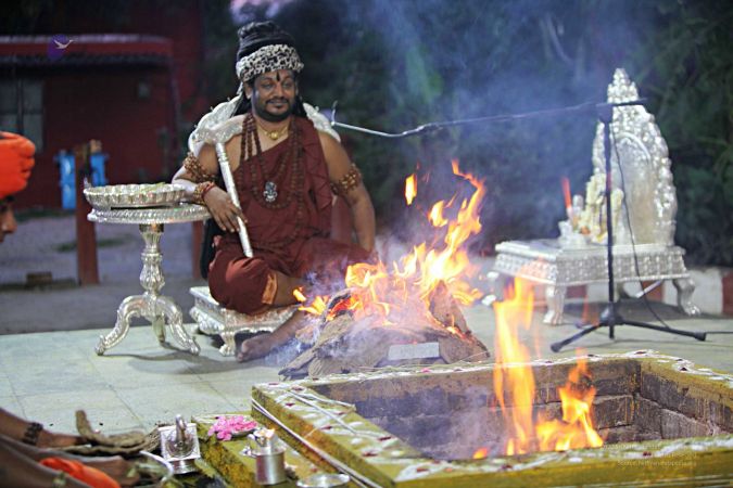 | + | File:20170831_Photo_173_15o7tBl1MEIOZGssDx9Fvq8aDw2Uu8PrU.jpg | His Divine Holiness ignites the Spiritual Alchemy Process - cowdung from Nithyananda Goshala's pure Desi cows is burnt to generate the smoke necesary for preparing authentic Aushadha | ||