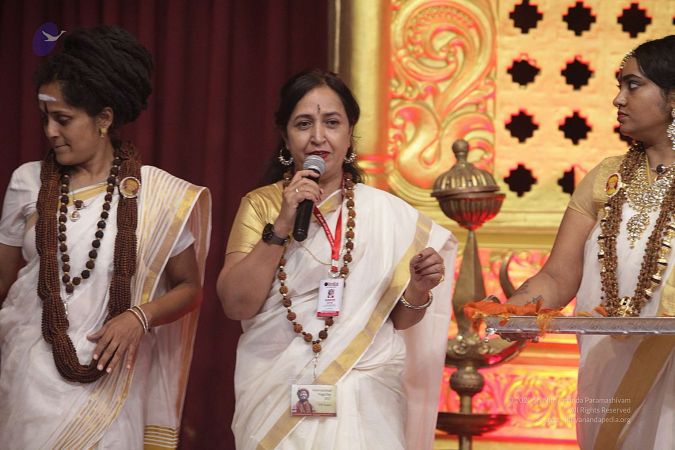 India Book of Records will have the distinction of being the first to certify this Yoga. We know there are 1000s and 1000s of certifications, awards, honours, that will come the way of Nithyananda Yoga and everything else that Swamiji is bringing here. So I congratulate India Book of Records, on being the first one to step up and be part of this beautiful unfolding of Sadāshiva. India Book of Records certifies and evaluates in accordance with the International Protocol for Records - IPR and preserves all this for future reference, following the guidelines today, which is the guidelines to set records, which is the GSR. And we are indeed honoured today to have Komal Singh from India Book of Records, to help adjudicate this event. Komal Singh is a Manager of India Book of Records and she has a lot of experience. She is an esteemed memory trainer having worked with conferences both nationally and internationally, to certify. Today, she is here. She adjudicated this event and I invite her to share a few words, before she makes the presentation.