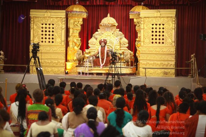 I welcome you all with My love and respects. I welcome all the Devotees, Disciples, Samaji’s, Satsangi’s, Sri Mahants, Mahants, sitting with us all over the world through Nithyananda TV, Facebook Live, hundreds of Aadheenavasi’s channels, YouTube Live, Twitter Live, 2-way Video Conferencing having Nayana Deeksha. I welcome every one of you with My love and respects.
