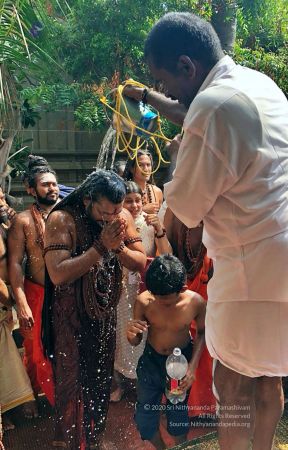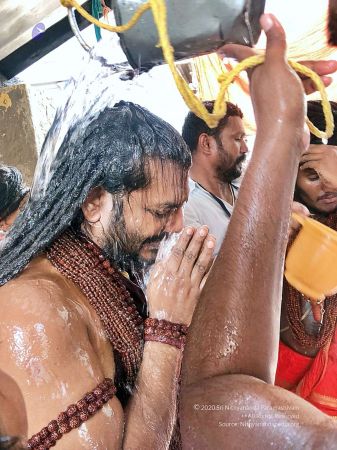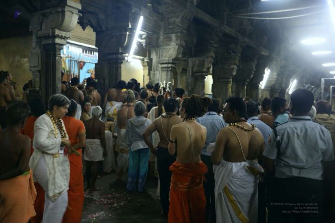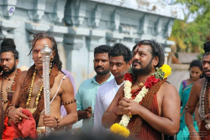 File:20810429_Photo_106_1K88Og_PCjZ5nnt4-3hP6ns2gVb-75lJ_.jpg | HDH Nithyananda Paramashivam is offering prayers & puja for his personal trishul at Ramanathaswamy Temple. This famous temple is dedicated to Lord Shiva and it is also one of the twelve Jyotirlinga temples