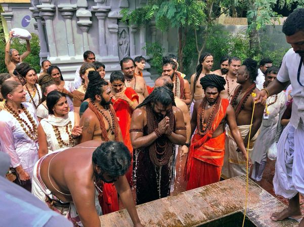 File:20810429_Photo_113_1YrGTsjMGzaa_ljTnUD5CyMrj0wNNs12h.jpg | HDH Nithyananda Paramashivam is offering prayers & puja for his personal trishul at Ramanathaswamy Temple. This famous temple is dedicated to Lord Shiva and it is also one of the twelve Jyotirlinga temples