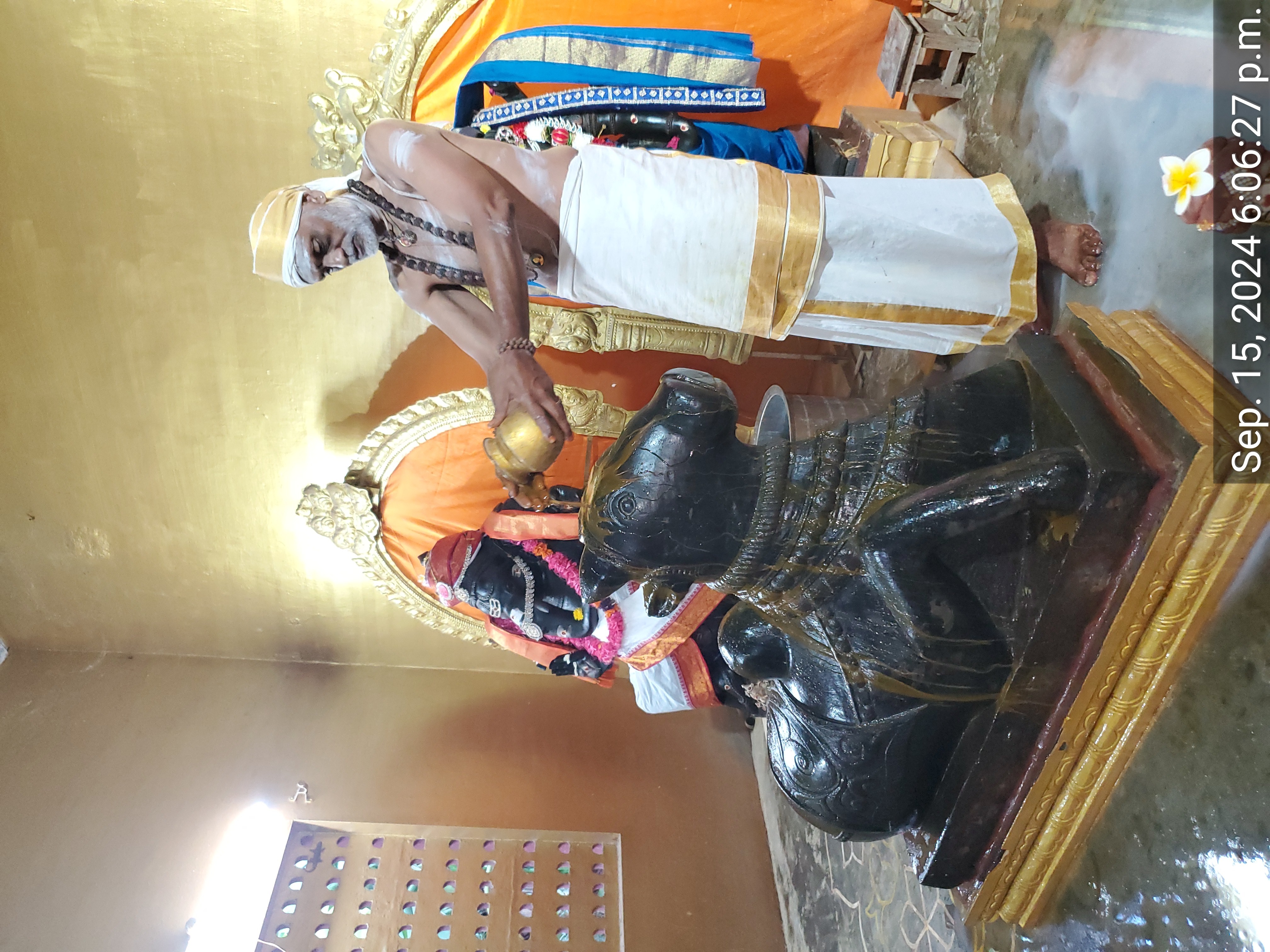 | − | + | The rituals were meticulously performed during the ''pradosha kala'', the especially auspicious period that occurs just before sunset. The central focus of the observance is the performance of ''abhishekam'' (ritual bathing) to '''Nandishwara''', the revered vehicle of Paramashiva. This practice is a powerful spiritual technology designed to purify the mind and body, preparing devotees to connect more deeply with the divine presence of Sadashiva, made accessible by the grace of THE SPH. | |