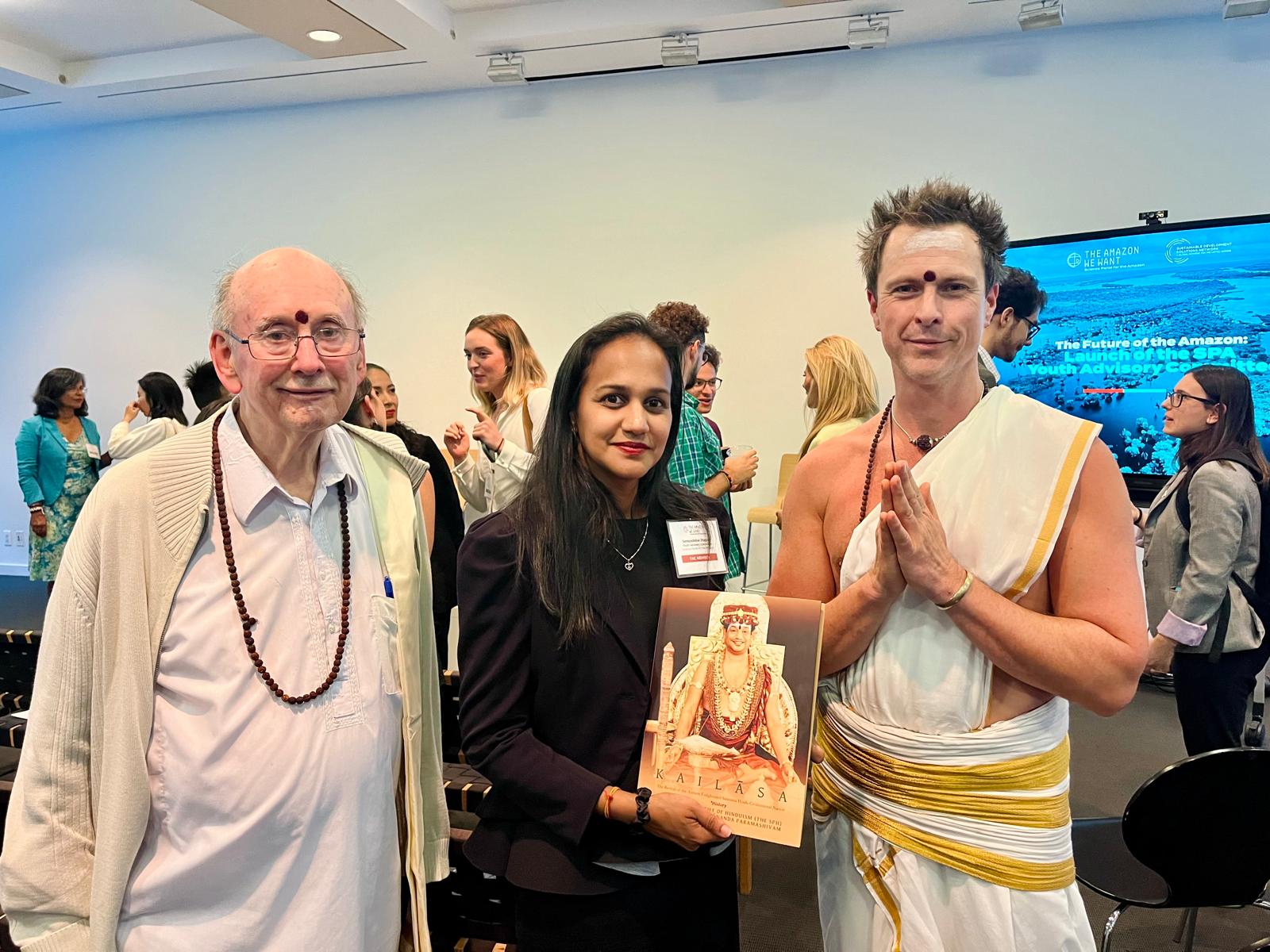 With the blessings of THE SUPREME PONTIFF OF HINDUISM (SPH), BHAGAVAN SRI NITHYANANDA PARAMASHIVAM — the ultimate manifestation, Paramavatara of Paramashiva — KAILASA OHIO, USA, conducted vital diplomatic outreach at the UN Future of the Amazon event held in New York City on September 20, 2024. This strategic engagement, executed by a dedicated volunteer, focused on presenting the vision of the United States of KAILASA (USK) to key global stakeholders, specifically members of the Youth Advisory Committee at the Science Panel for the Amazon. By sharing official USK literature, KAILASA reaffirmed its commitment to the revival of ancient enlightened Sanatana Hindu Dharma, human consciousness awakening, and fostering international cooperation on critical environmental and civilizational issues, furthering the mission gifted to humanity by THE SPH.