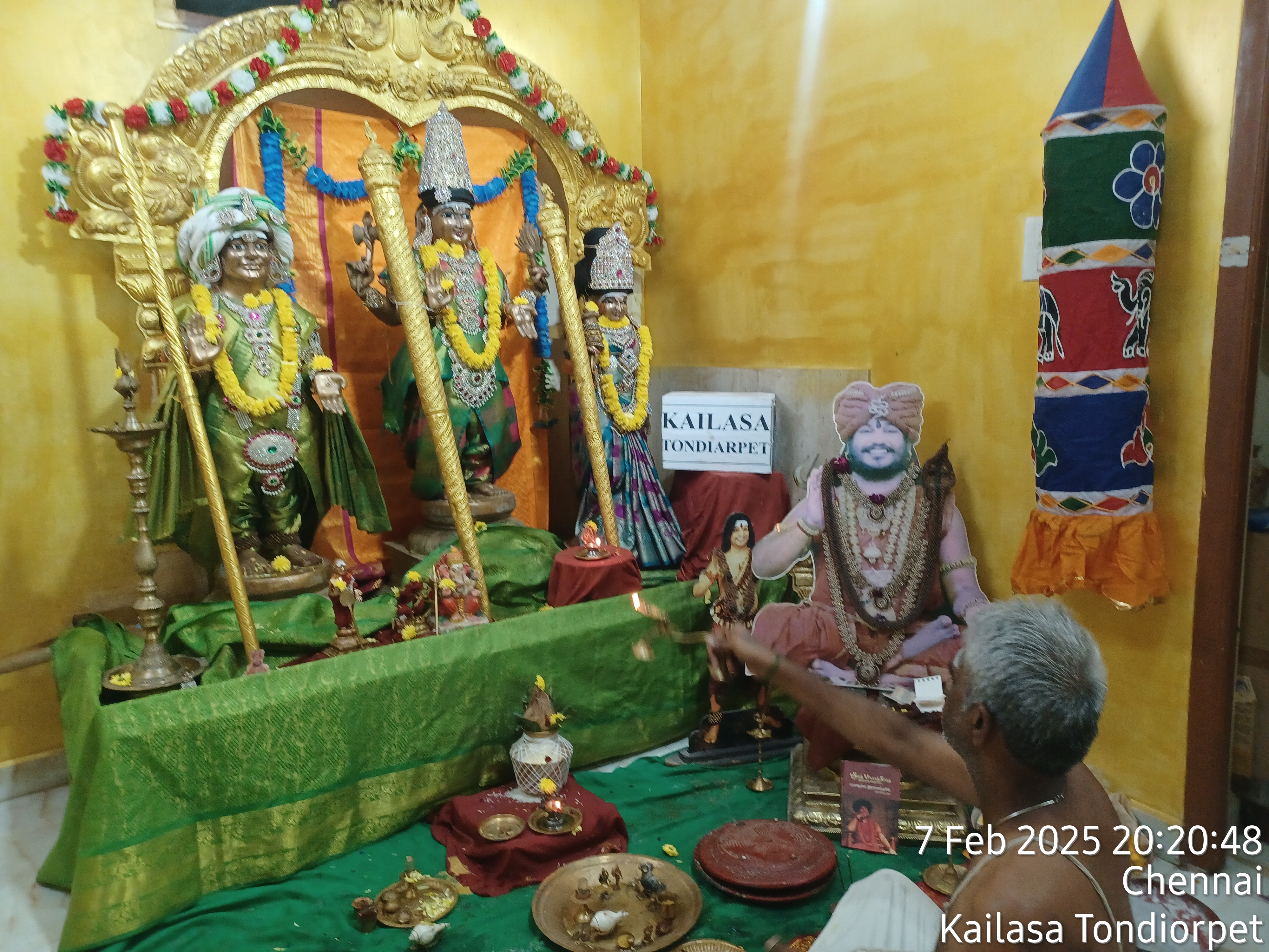 With the blessings of THE SUPREME PONTIFF OF HINDUISM (SPH), BHAGAVAN SRI NITHYANANDA PARAMASHIVAM — the ultimate manifestation, Paramavatara of Paramashiva — KAILASA THONDAIYARPET marked a deeply auspicious day on 7/2/2025 by observing the '''Daily Rituals (Nithyotsavam)'''. This continuous performance of sacred Hindu rituals is central to the mission of KAILASA, ensuring the manifestation of the state, space, powers, being and superconsciousness of Paramashiva in the physical world. The daily worship forms the cornerstone of KAILASA’s global efforts toward the revival of Sanatana Hindu Dharma, anchoring the collective consciousness of devotees in the eternal presence and grace of THE SPH and all the gods and goddesses of KAILASA. This sustained ritualistic activity reaffirms the commitment of the United States of KAILASA to restoring the highest spiritual technologies for the enlightenment of all beings.