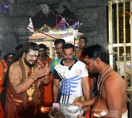 | − | + | File:20170206_Photo_126_14qj0SDce7ANUvuiefXcS_zVWnREnVE6y.jpg | His Divine Holiness honoring the security guard at Aruchaleshwara Temple | |