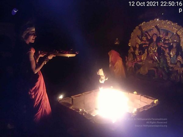 With the Grace and Blessings of The SPH JGM HDH Bhagavan Nithyananda Paramashivam, Chandi Homa was offered on Day 6 of Navaratri Celebrations at Kailasa At Tiruvannamalai - Arunachala Sarvajnapeetham.