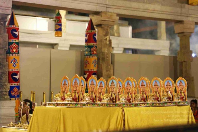 The Supreme Pontiff of Hinduism, Jagatguru Mahasannidhanam, His Divine Holiness, Bhagavan Nithyananda Paramashivam, is the visionary through whom this whole revival of KAILASA is made possible. Today, The Supreme Pontiff of Hinduism, Jagatguru Mahasannidhanam, His Divine Holiness, Bhagavan Nithyananda Paramashivam personally attended to administering the construction of the Nithyananda Sadashiva Devasthanam of what is going to be the largest golden temple for Sadashiva in the world. Sitting amongst the stone pillars that will be used for the temple, He oversaw construction work being done in the land which will accommodate the third Prakaram of the temple.