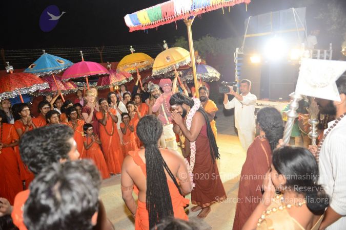 HDH Bhagavan Sri Nithyananda Paramashivam welcomed with respects and devotion - offering of Lotus Garland