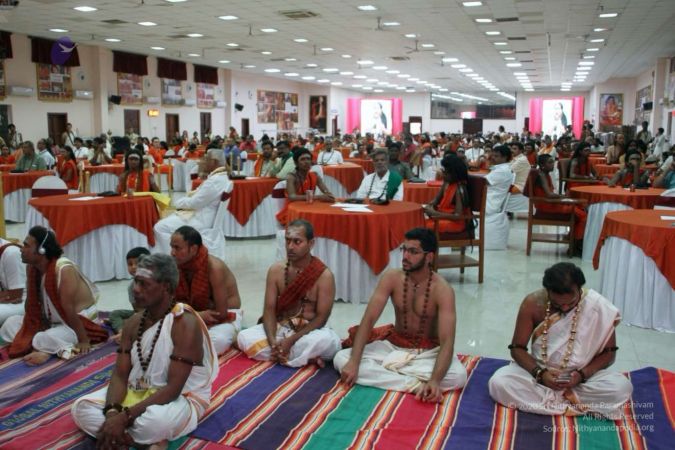 I welcome all of you with My love and respects. I welcome many distinguished, enlightened citizens of the society, who are here today, from all walks of life, sitting with us in Bengaluru Aadheenam and all over the world, through 2-way Video Conferencing in all our Aadheenams. Long list of all the Aadheenams, attending the program now in 2-way Video Conferencing - Los Angeles Aadheenam, Houston Aadheenam, a long list. I welcome all of you and all the Dignitaries, Guests, in all the Aadheenams present. And, today we have really long list of very important persons and guests here, amongst us. First, Sri Vedantamji – Founder and Chairman of Vishwa Hindu Parishad and Swami Govinda Ramanujacharya – Head of the Ramanuja Samrajya Sabha and Mr. Prasad – State President of BJP. Actually the dignitaries are such large number, originally I wanted Me to sit there, so the whole hall becomes a stage. Because the number of dignitaries can’t be accommodated…..the stage is too small. Originally I planned, let Me also sit with them, the whole hall become stage, but if I sit there, then we will not be able to conduct the Satsang, because the whole 2-way Video Conferencing setup, the technical set up is available here. That’s the reason I am here. So I sincerely apologise for all the Dignitaries, that you are all there and I am here, because it is just the technical reason, no other reason and.. Sri Mr Prasad - State President of BJP is here and Lakshmi Narayana Gowda - Chairman of Karnataka Rajya Raitha Sanghais here and Dr. Raju – Research Director of NIMHANS is here and Mallikarjun – Principal of BMS Engineering College is here, Sri Manjunath – Leader of Bajrang Dal is here, Jayachandra Reddy – Secretary of Telugu Vigyana Samitiis hereand G K Ganapati Reddy – Chairman and Managing Director of Stay Fit Health Fitness is here and Meena Das Narayan – Journalist, Artist, she is here and Dr Banu – Neurosurgeon….yes, Sri Raghu – Entrepreneur and there is a long list….Shivanand Sahai – a Industrialist, welcome…..