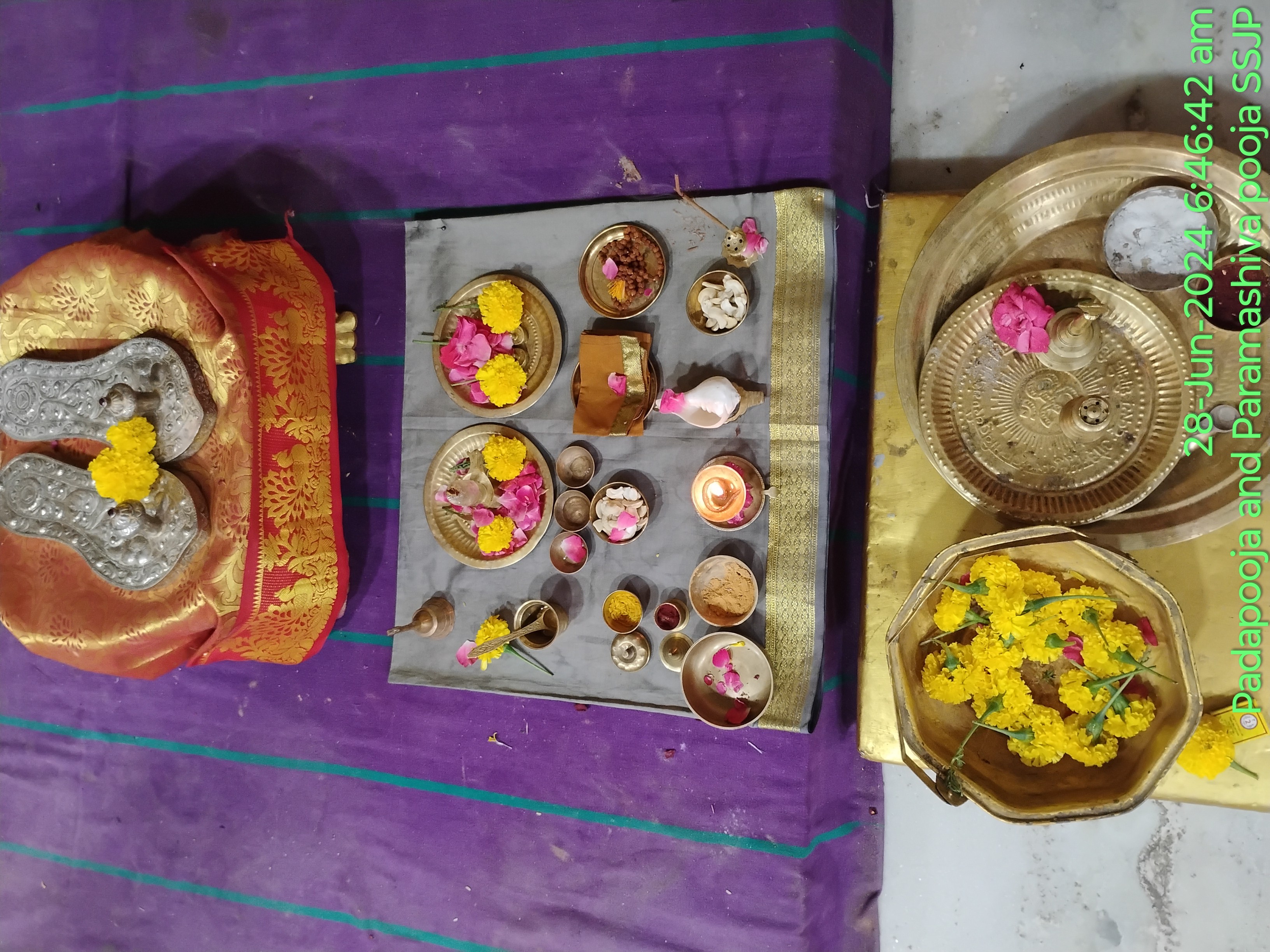 The sacred schedule commenced with the auspicious Palliyezluchchi, the ritualistic awakening of the Divine, marking the beginning of the day in deep reverence. This was immediately followed by the performance of the Laghu Pooja and the heartfelt Padapooja, dedicated to the lotus feet of THE SPH, recognizing Him as the living Paramavatara. These preparatory rituals serve as a foundational anchor, harmonizing the spiritual atmosphere and readying the devotees for deeper conscious experiences throughout the day.