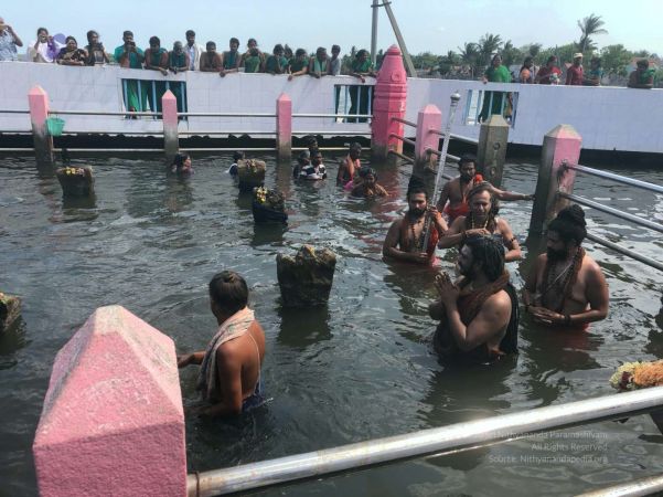 நிகழ்வின் விவரனை : இந்துமதத்தின் தனிப்பெரும் ஜெகத்குருமஹாசன்னிதானம் ஶீலஶீ பகவான் நித்யானந்த பரமசிவம் அவர்கள் மஹாசதாசிஹோகம் நிகழ்வின் இறுதி நாளை தேவிபட்டினம், திருச்செந்தூர் முருகன் கோயில், ராமேஸ்வரம் ஸ்தலத்தில் நிகழ்த்த தீர்மானித்தது தீர்த்த யாத்திரையை தமது சீடர்களுடன் செய்தார். அங்கு பகவானின் அருளாசியுடன் சீடர்கள் கடற்கரை மணற்பரப்பில் நித்யானந்த யோகம் பயிற்சி செய்தனர். அதன்பின் பகவான் அவர்கள் தமது கரத்தால் மணலால் சிவ லிங்கம் செய்து சிவ பூஜை செய்தார். பின் ராமநாத ஸ்வாமி திருக்கோயிலுக்கு சென்று 1008 சங்காபிஷேகம் செய்து தரிசனம் செய்தார். பகவான் அவர்கள் தம் சீடர்களுடன் இந்த தீர்த்த யாத்திரை செய்தது மிகவும் முக்கியமான விஷேத்தை பெற்றது.