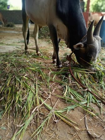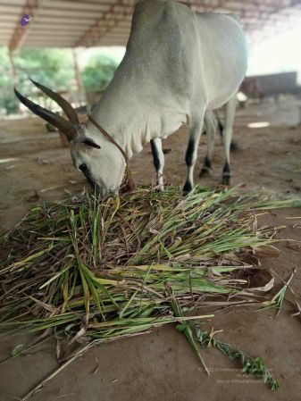 Green Fodder Harvesting and Feeding Cows in Nithyananda GoMandir at Kailasa In Tiruvannamalai - Arunachala Sarvajnapeetham, India