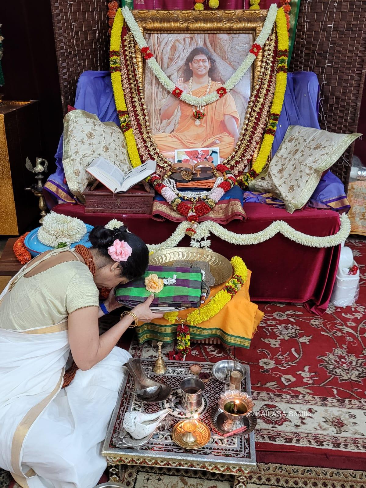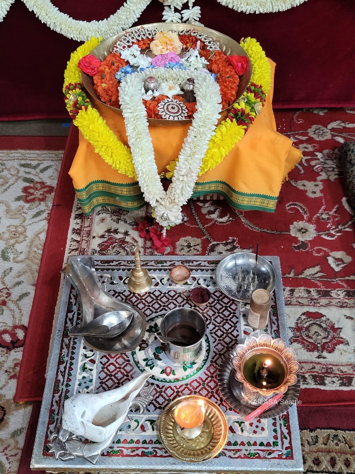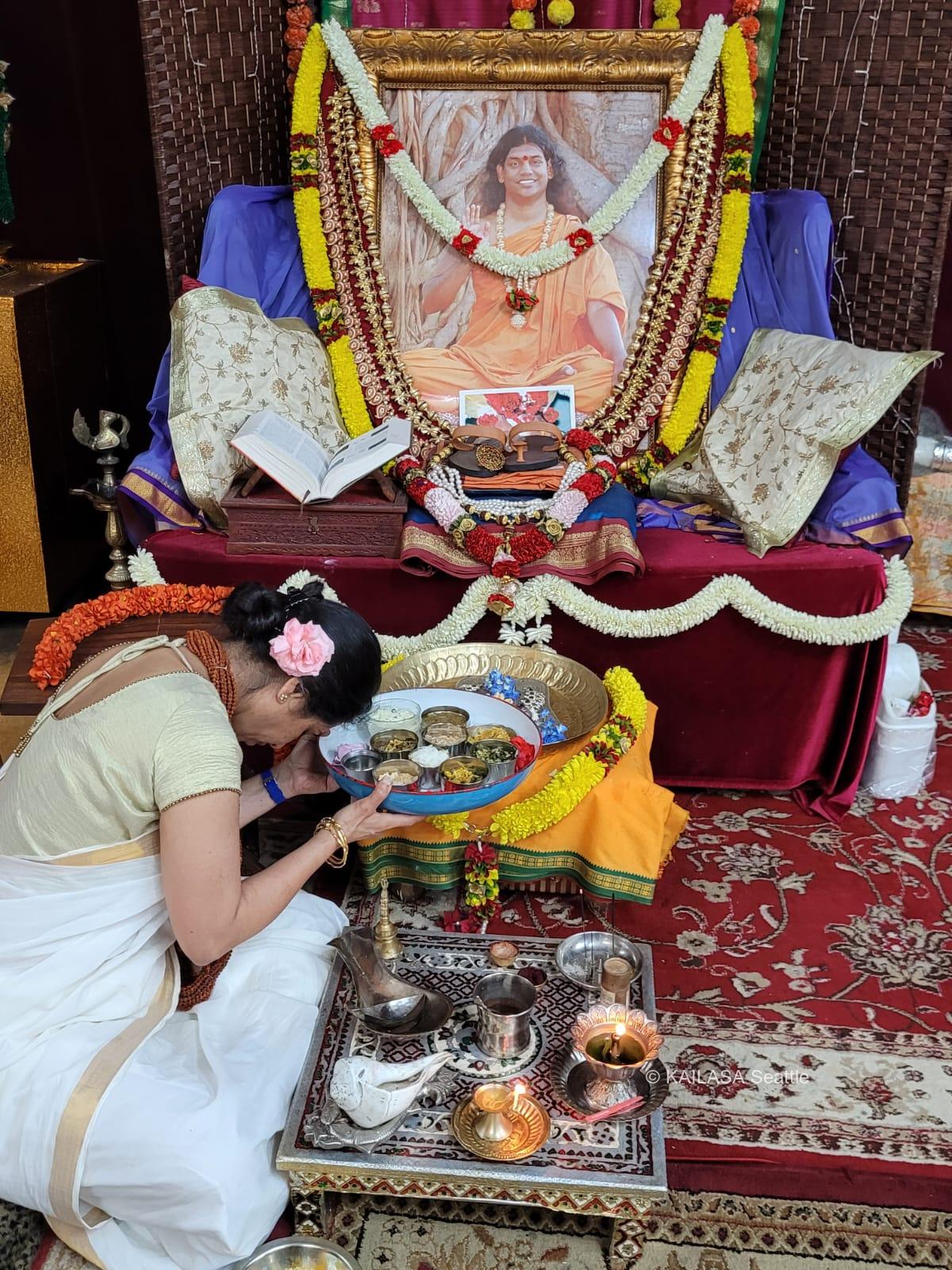 With the blessings of THE SUPREME PONTIFF OF HINDUISM (SPH), BHAGAVAN SRI NITHYANANDA PARAMASHIVAM — the ultimate manifestation, Paramavatara of Paramashiva — KAILASA Seattle, USA, successfully conducted the sacred Nithyotsavam rituals and evening 'seva' on 12/7/2024. This daily spiritual celebration reinforces the connection between the local community and the divine mission of the United States of KAILASA, dedicated to the revival of Sanatana Hindu Dharma. The evening was dedicated to performing elaborate 'seva' and 'neivedyams' (sacred food offerings) to Devi Parashakti, Mahakala, and other presiding deities, along with offering special 'puja' to the SPH Guru Paduka. The activities, which included spiritual healing sessions and distribution of the Bhagavad Gita Decoded, saw the enthusiastic engagement of 17 participants, facilitated by the dedication of 4 volunteers. These daily rituals serve as a powerful medium for reviving ancient Hindu spiritual technologies that enable devotees to manifest the state, space, powers, being, and superconsciousness of Paramashiva.