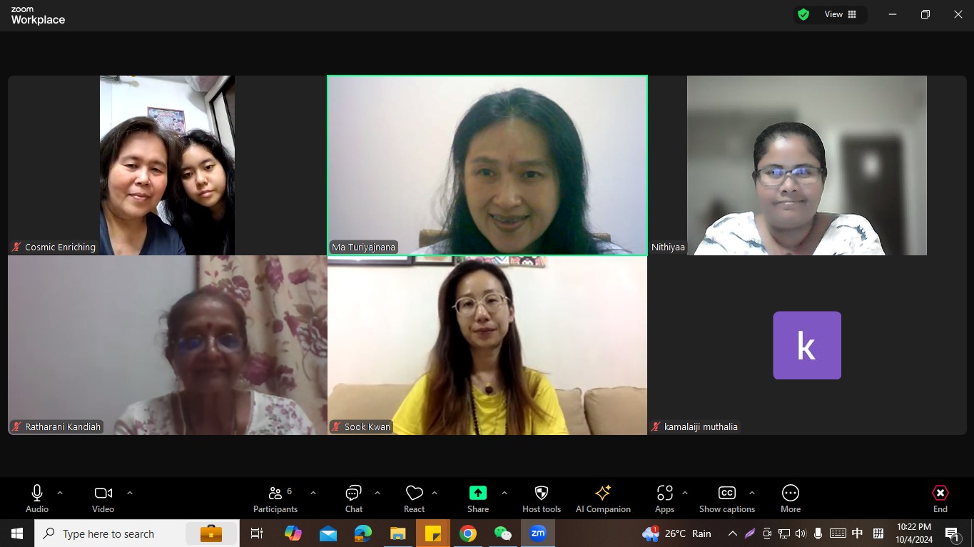 The meditation program was held virtually via Zoom, allowing for easy accessibility for devotees across the region. Beginning at 10:00 PM MYT, the structured 21-minute session saw enthusiastic engagement from 6 dedicated individuals, including the session facilitator. This consistent and focused practice ensures that participants receive the direct divine grace required to detach from the internal dialogue (*vikalpas*) and experience the restful, alert space of the Superconsciousness.