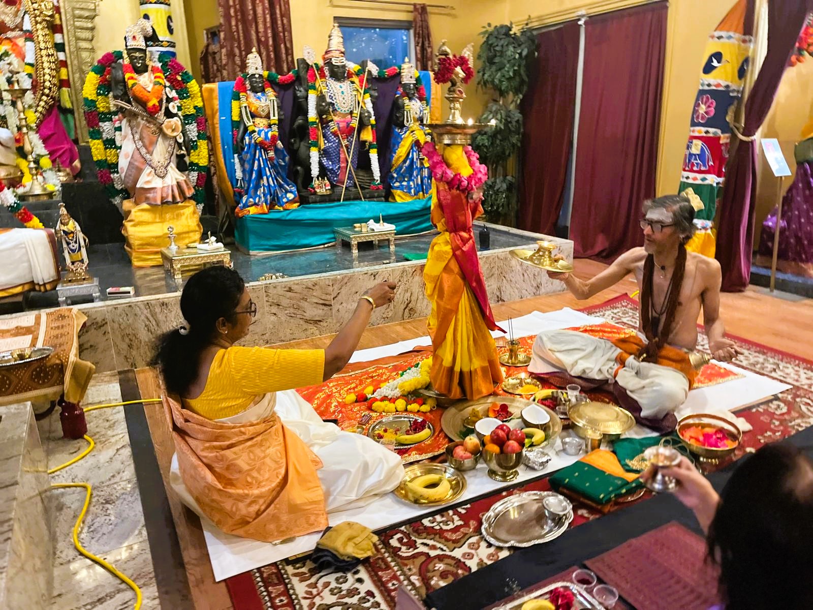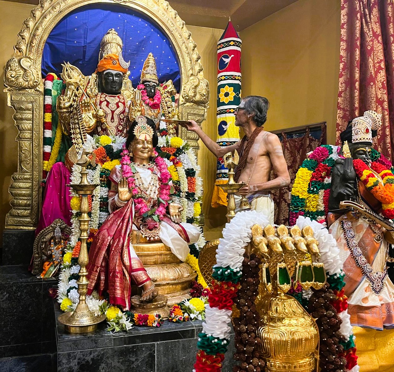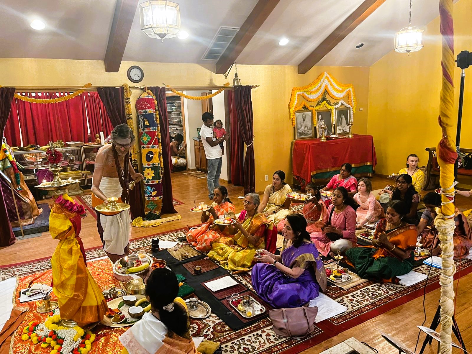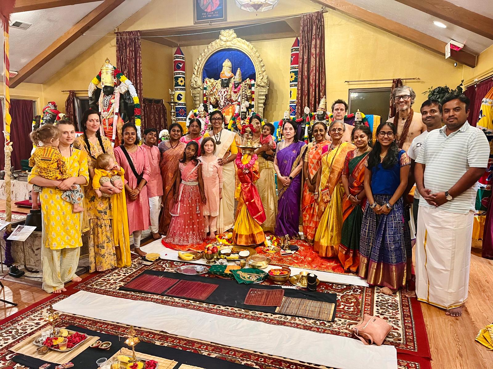 Complementing the light ceremony was the beautiful Saraswati Alankar, where the shrine of Goddess Saraswati, the embodiment of divine knowledge, arts, and speech, was adorned with great reverence and devotion. This adornment served as a physical representation of the spiritual beauty and infinite knowledge offered through Sanatana Hindu Dharma. The entire day of rituals and devotional service was meticulously supported by the seamless organization and dedicated service of 4 volunteers, underscoring KAILASA's commitment to restoring authentic Hindu practices globally and ensuring these spiritual technologies remain accessible to all seekers.