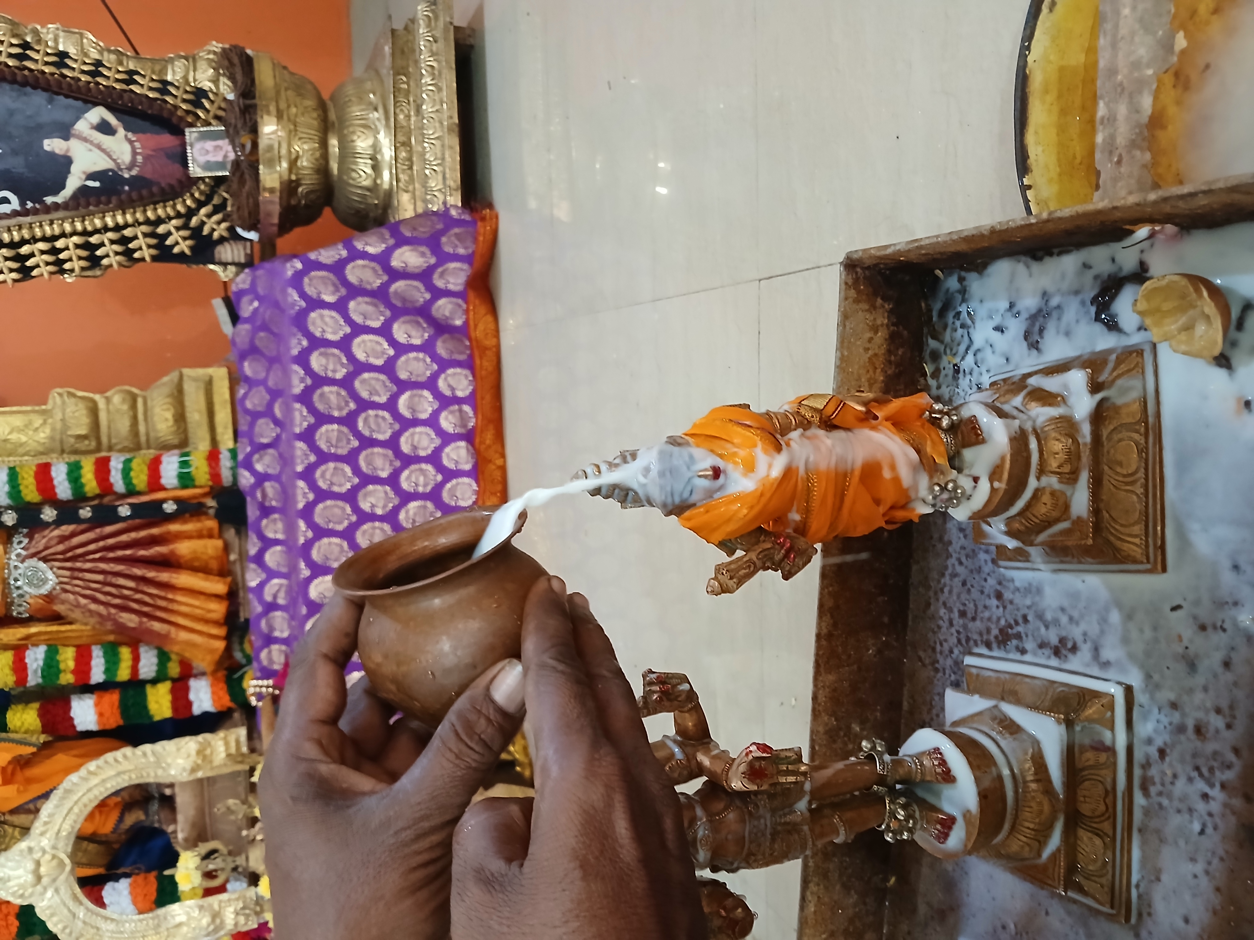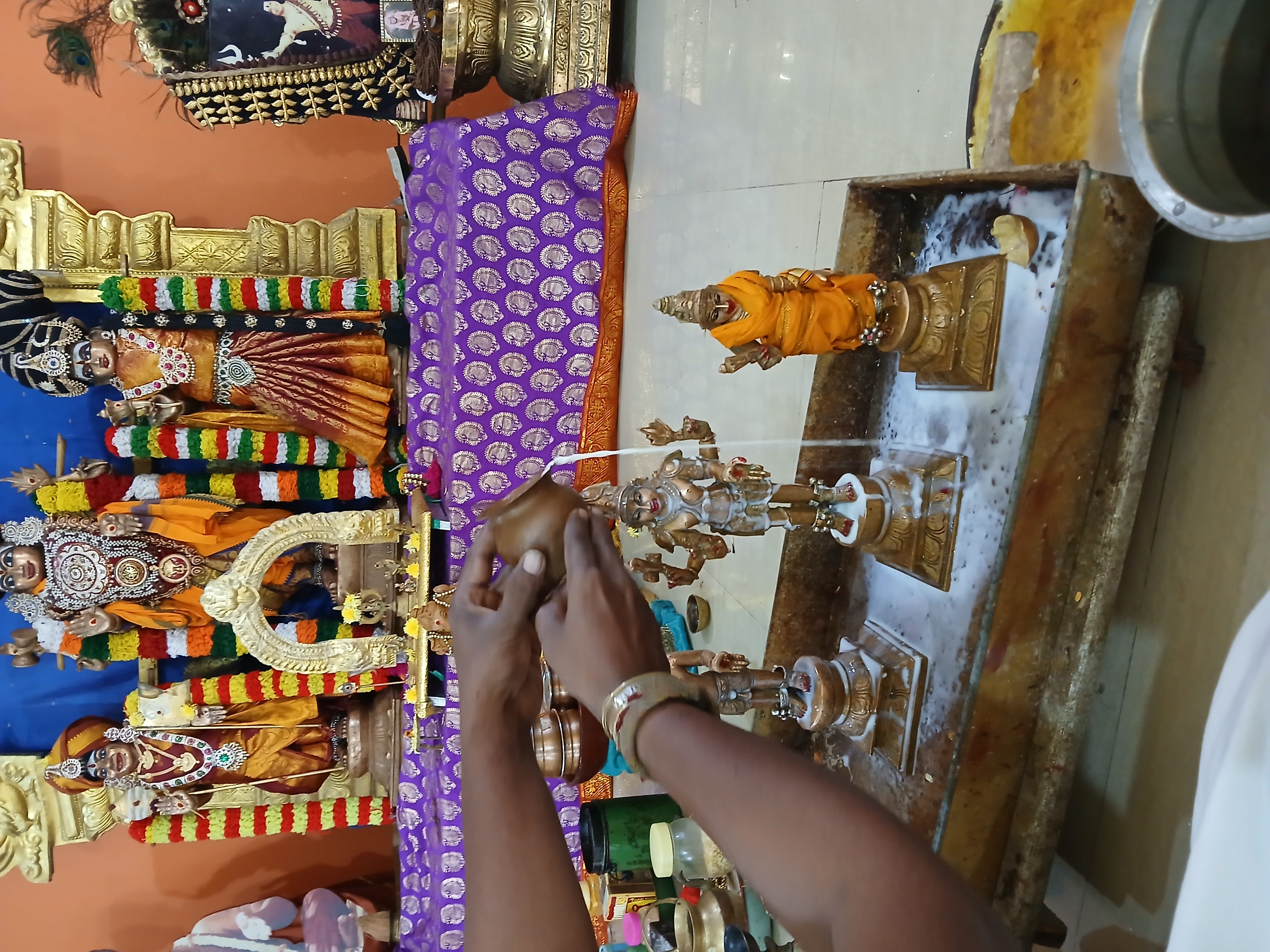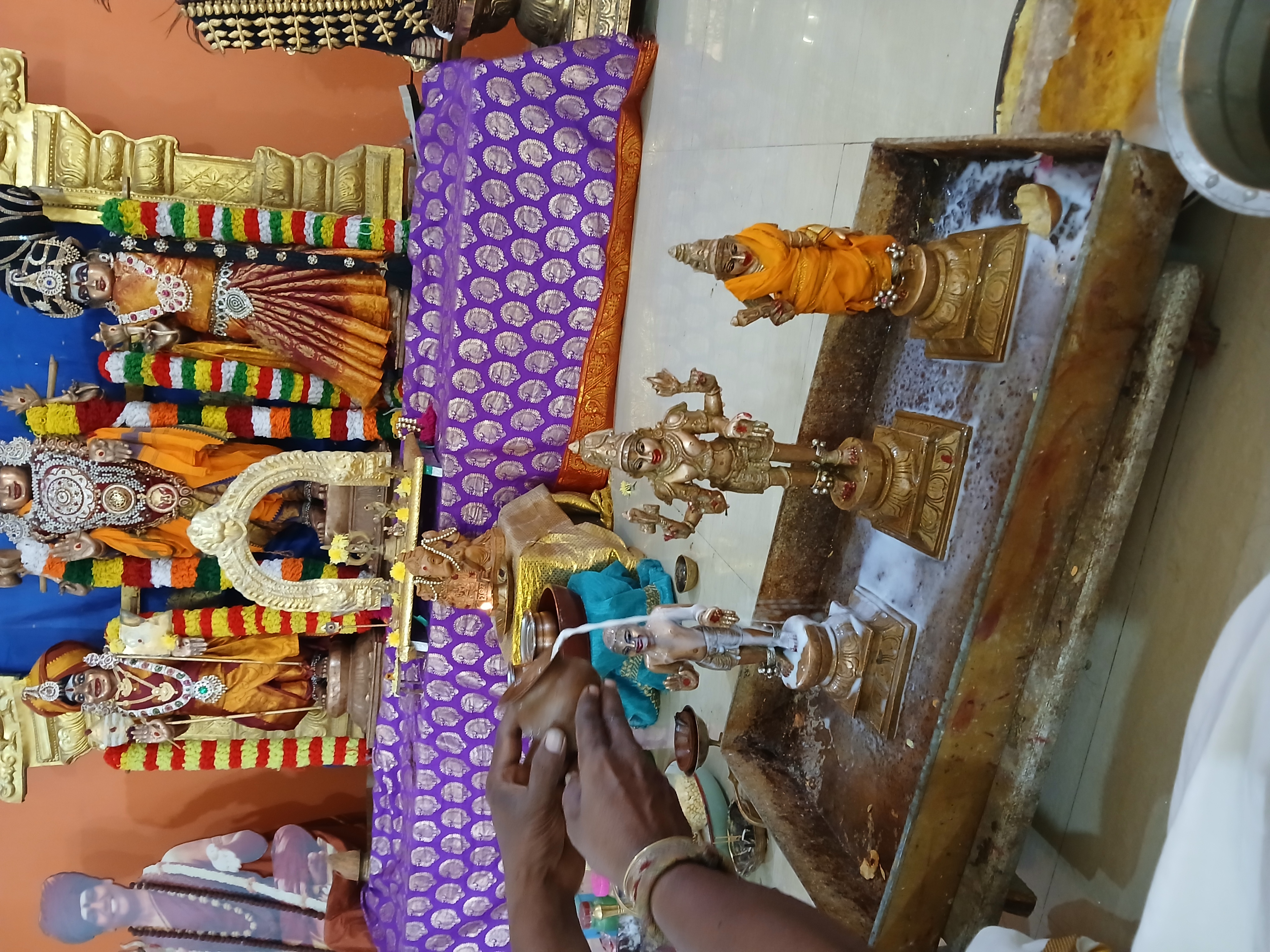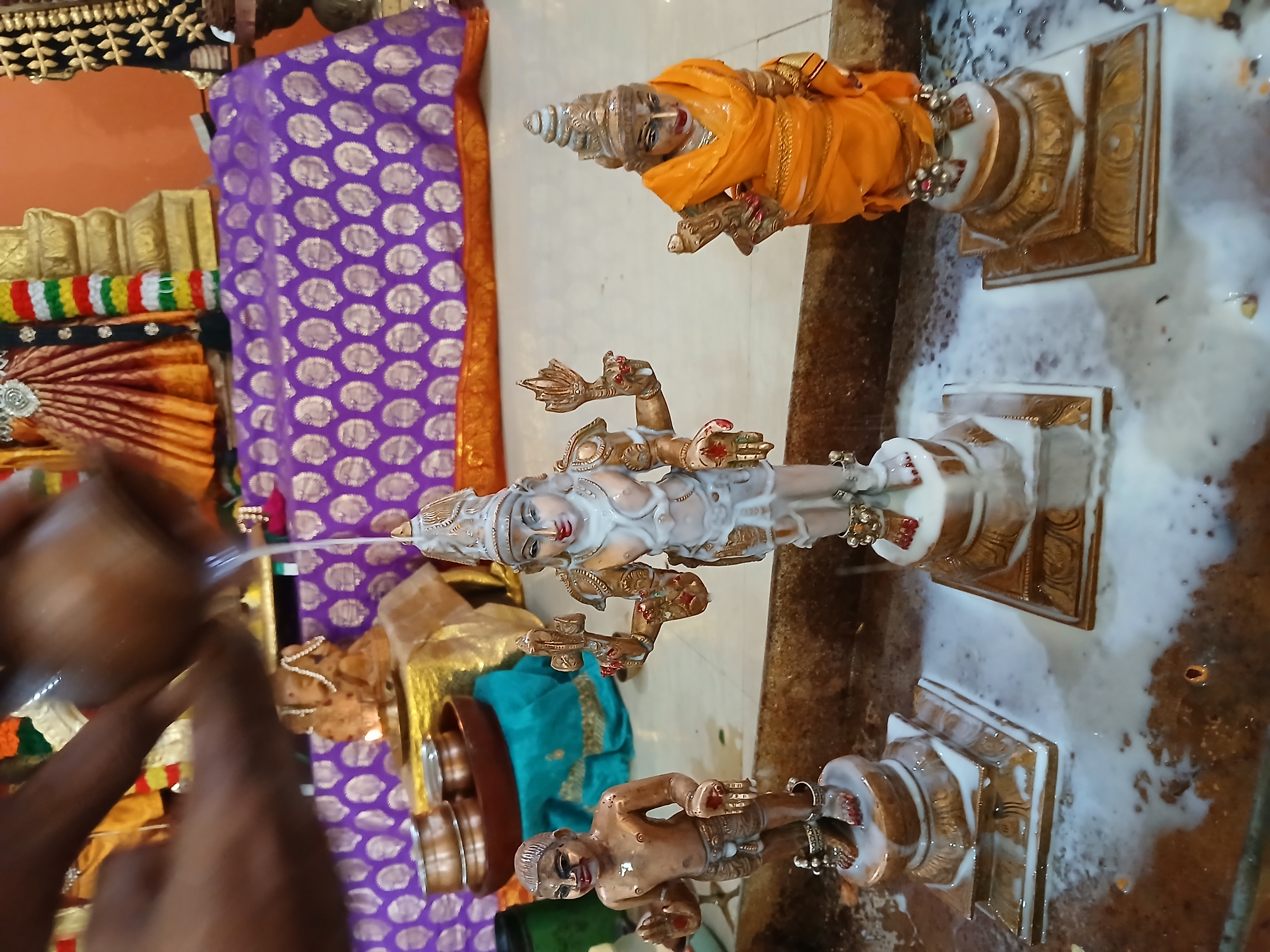 The sacred Abishegam ritual, a vital component of the Daily Rituals (Nithyotsavam) observed across all KAILASA centers worldwide, was conducted with deep spiritual reverence at KAILASA AVADI CHENNAI. This daily worship honors the Deities established by the divine vision of THE SPH, ensuring the continuous flow of His grace and blessings upon the local community and all beings. The ceremony involved the ritualistic bathing (Abishegam) of the Deities using sacred substances, symbolizing purification and the invocation of divine attributes into the consciousness of the participants.
