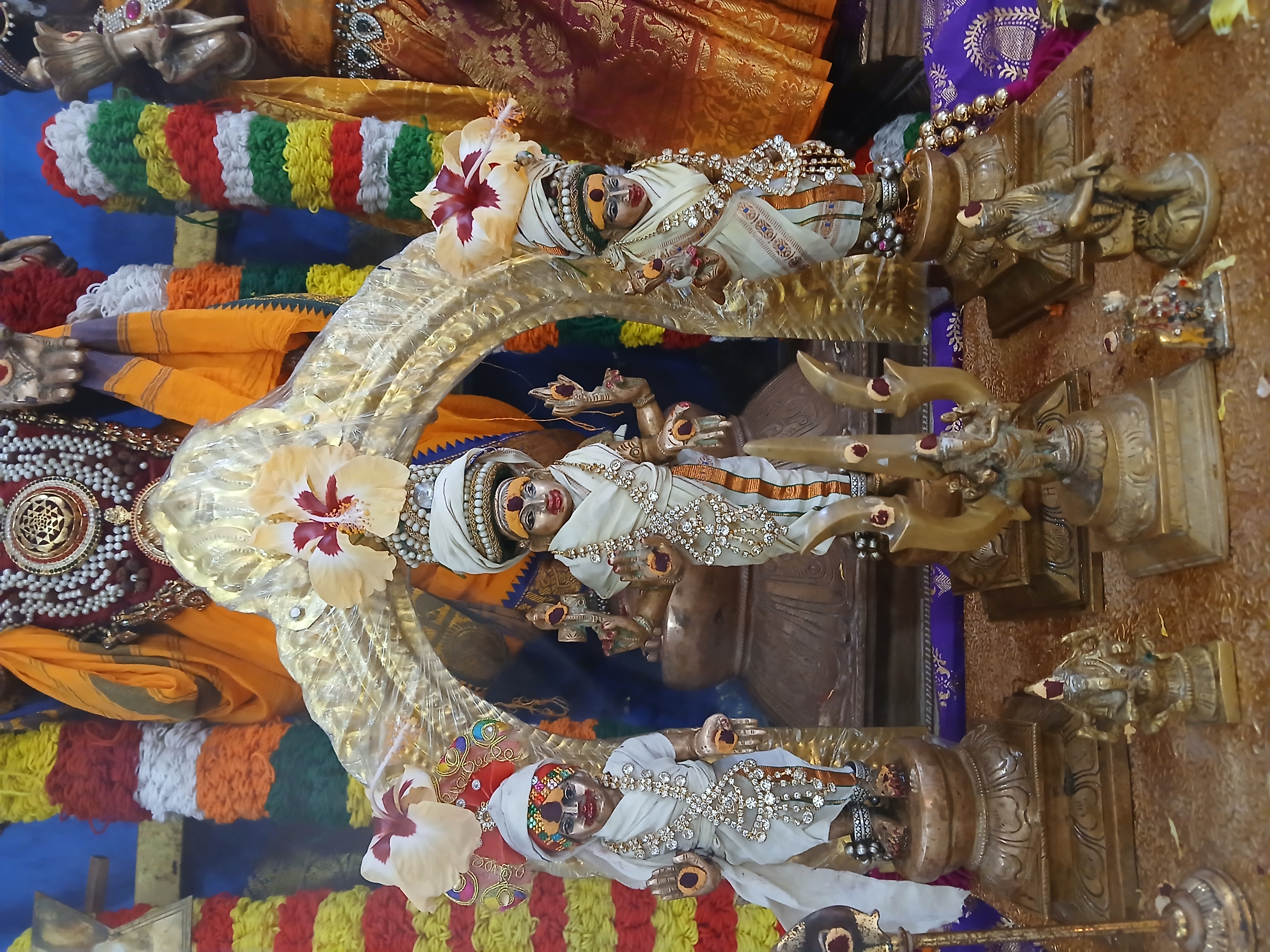 Following the sacred bath, the Deities were honored with intricate adornment (Alankaram), where they are dressed in elaborate garments and ornaments, symbolizing the complete manifestation of divine splendor. This practice reflects the rich cultural and spiritual heritage of the Hindu civilization revived by THE SPH. The daily rituals culminated with the performance of Arthi, the offering of light, signifying the destruction of ignorance and the illumination of the inner Self through the grace of THE SPH and all the gods and goddesses of KAILASA.