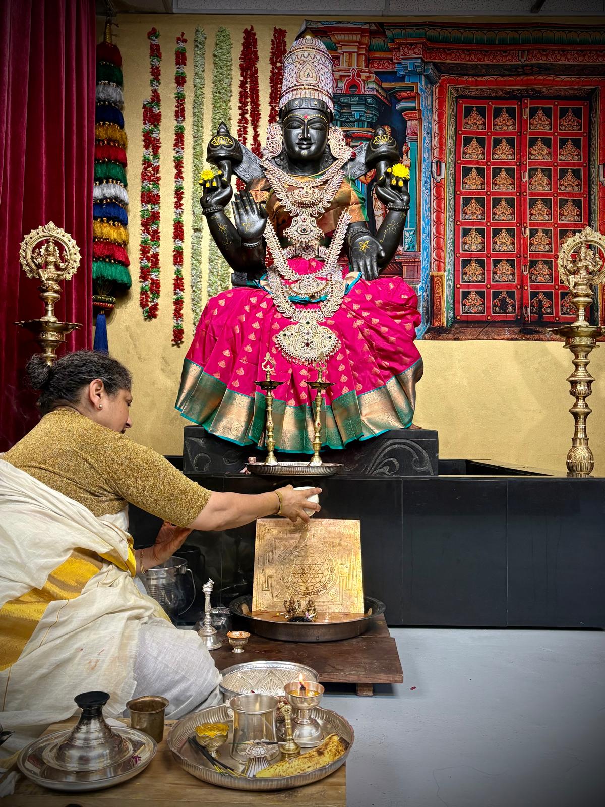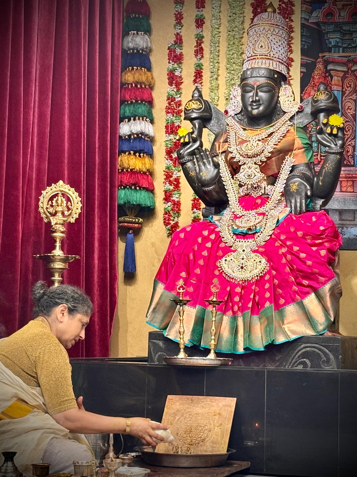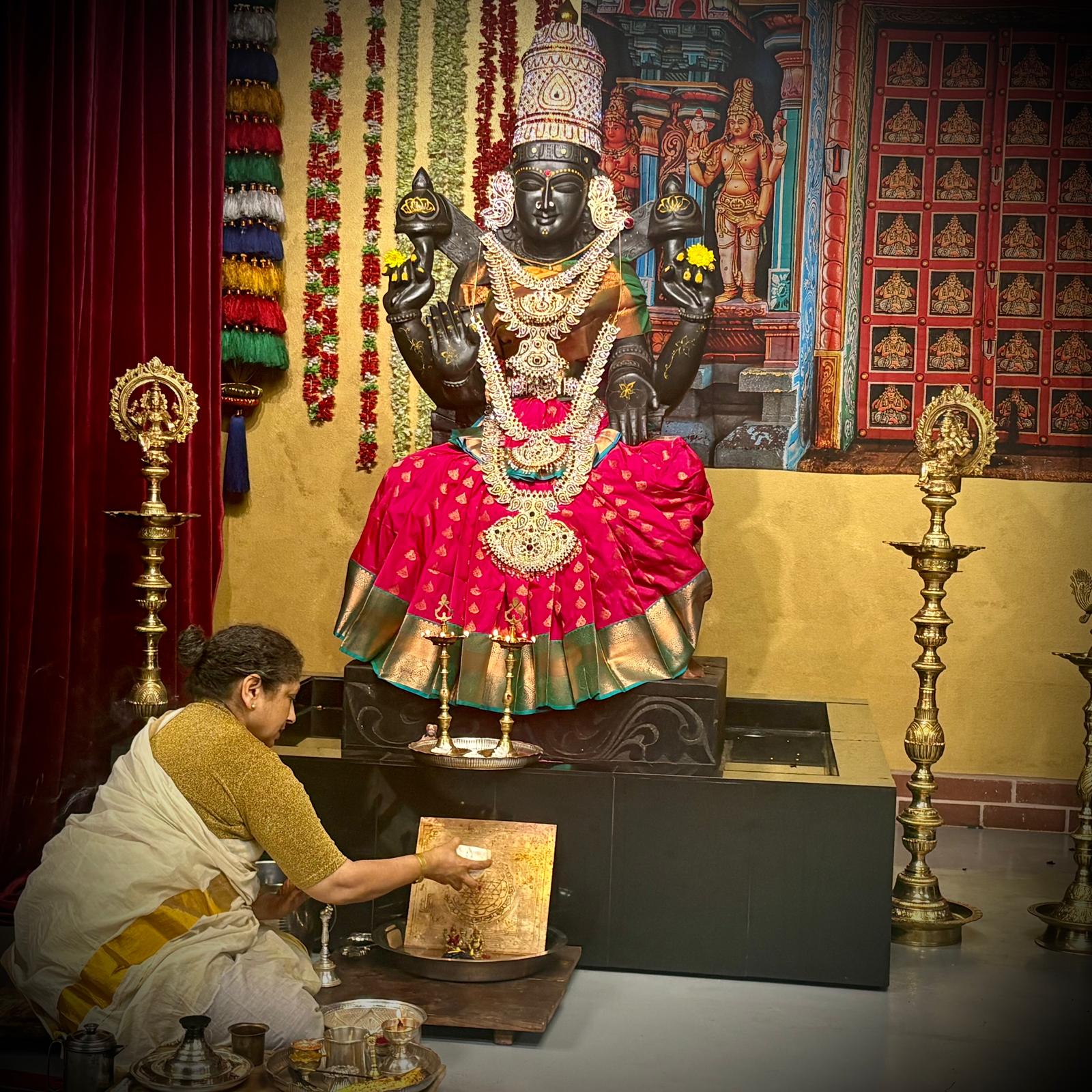 The sacred observance of the Vilakku Puja & Abhishekam By Sangha Jananis was conducted at KAILASA HOUSTON USA, continuing the daily devotional practices that form the backbone of the Nithyotsavam. This ancient Hindu ritual focused on honoring the feminine divinity (Shakti) and invoking the grace of Goddess Lakshmi, the embodiment of wealth, auspiciousness, and spiritual abundance. The ceremony involved the lighting of sacred lamps (Vilakku Puja) followed by the Abhishekam, a ritual bathing ceremony for the Deities, performed with meticulous traditional Hindu precision.