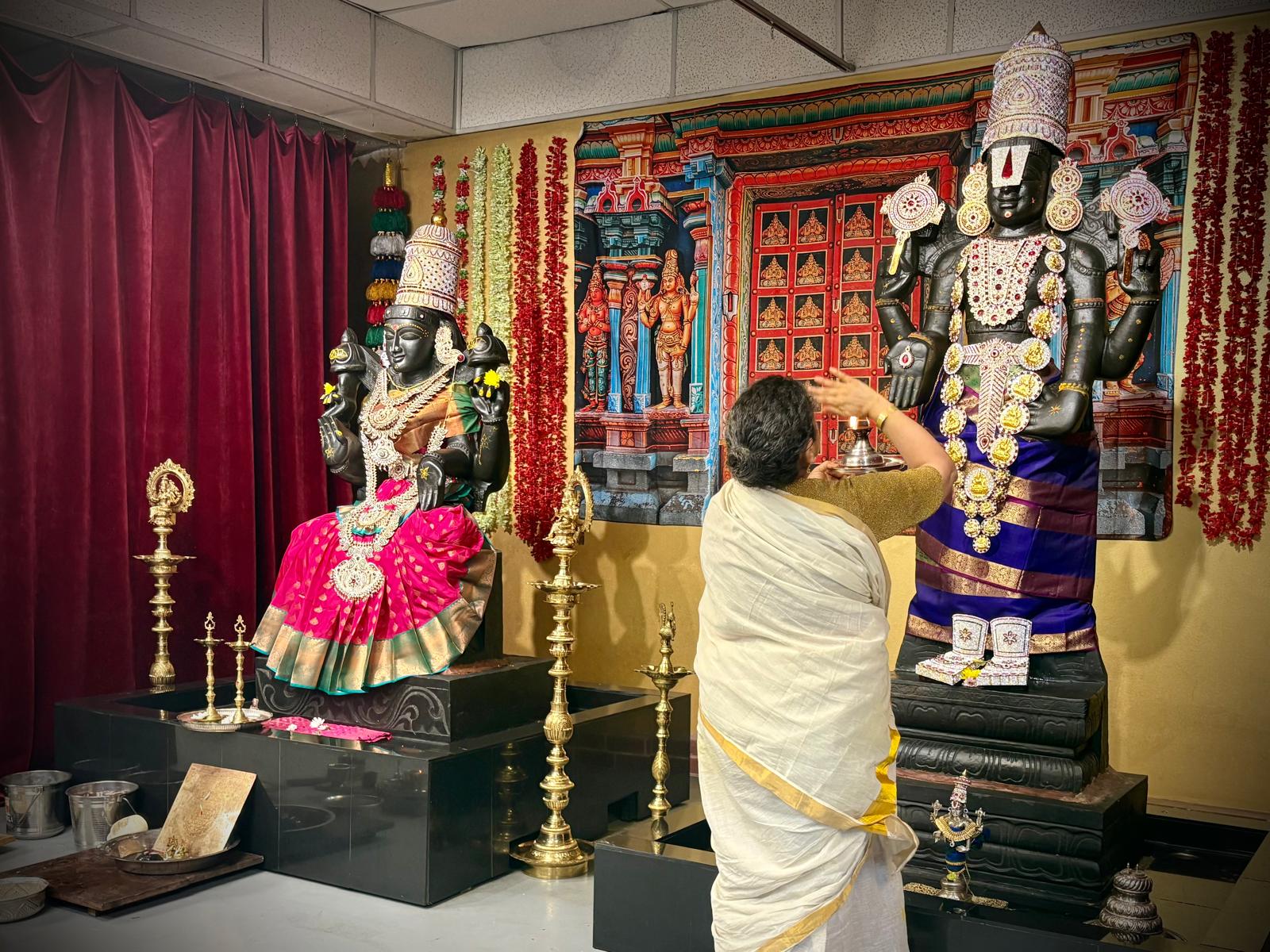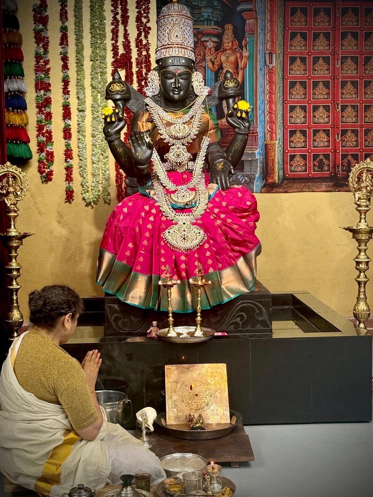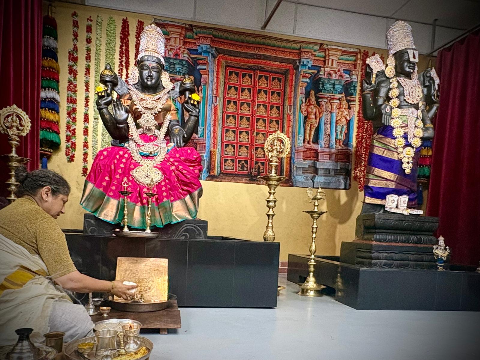 The sacred observance of the Vilakku Puja & Abhishekam By Sangha Jananis was conducted at KAILASA HOUSTON USA, continuing the daily devotional practices that form the backbone of the Nithyotsavam. This ancient Hindu ritual focused on honoring the feminine divinity (Shakti) and invoking the grace of Goddess Lakshmi, the embodiment of wealth, auspiciousness, and spiritual abundance. The ceremony involved the lighting of sacred lamps (Vilakku Puja) followed by the Abhishekam, a ritual bathing ceremony for the Deities, performed with meticulous traditional Hindu precision.