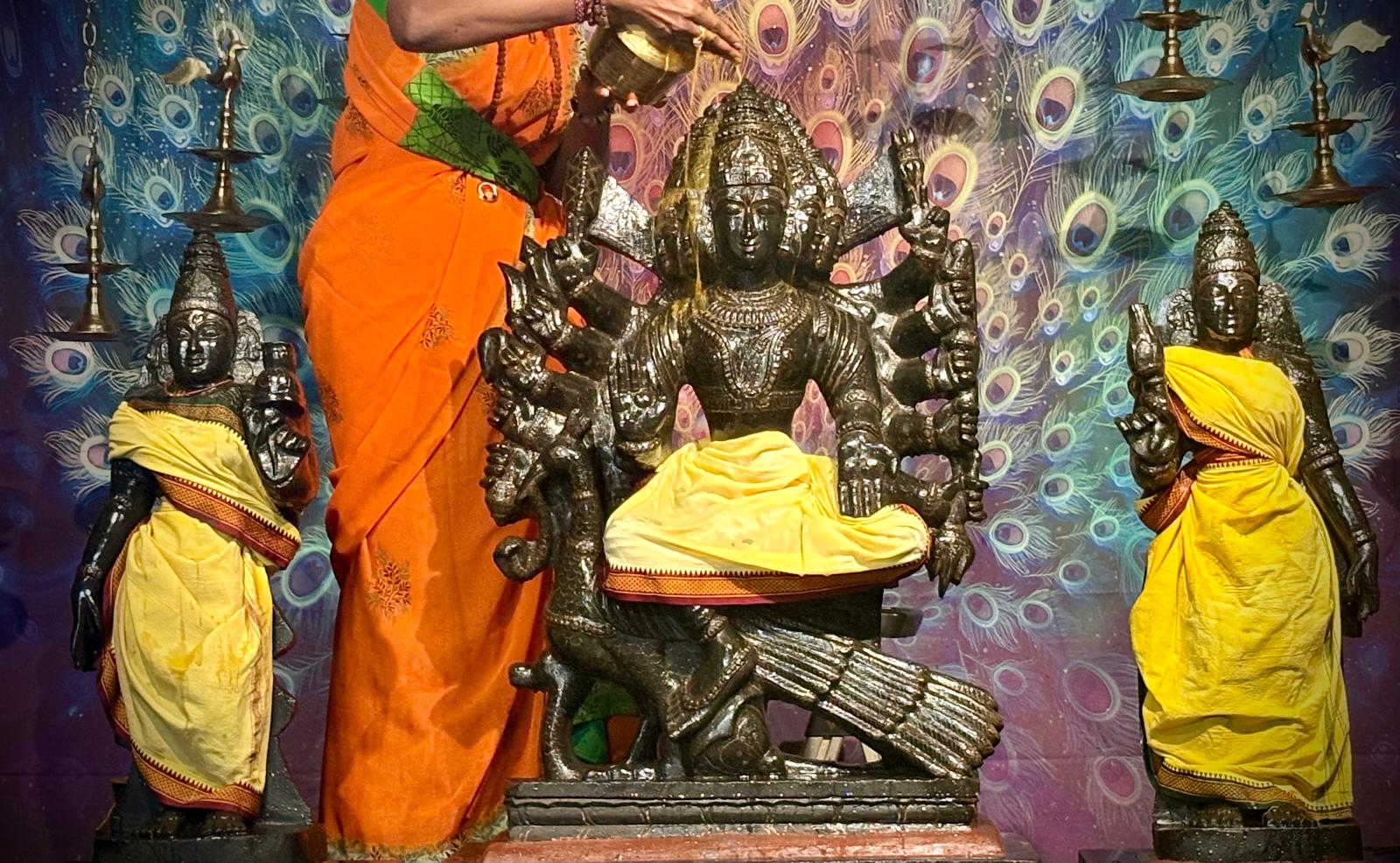 The Subramanya Abhishekam, Valli, Devasena ritual was conducted as a powerful Nithyotsavam, a daily celebration of eternal bliss that sustains the spiritual frequency of the KAILASA Houston spiritual ecosystem. Lord Subramanya, the divine son of Paramashiva and Parashakti, is revered as the embodiment of highest integrity, swift action, divine knowledge, and courage. The performance of the Abhishekam (sacred bathing) to the deities of Lord Subramanya along with His divine consorts, Valli and Devasena, is a central practice in Hindu tradition for invoking protection and removing obstacles related to spiritual and material growth.