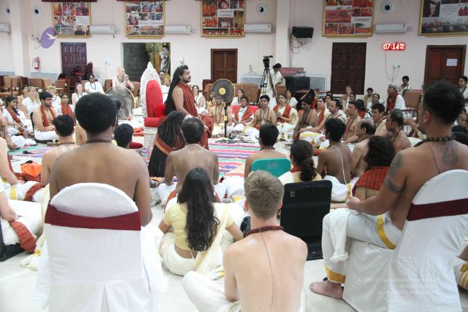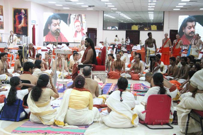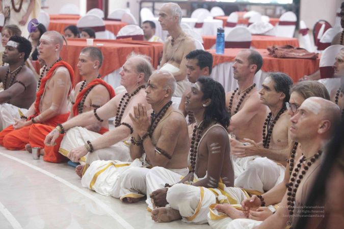 I welcome all of you with My love and respects. I welcome all the Sarvajna Peetha Yajamans, Nithya Satsangis, Sri Mahants, Mahants, everyone with My love and respects.