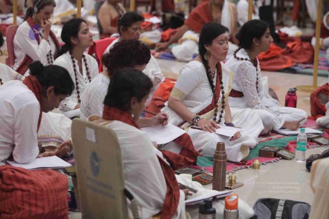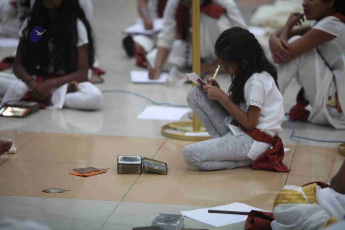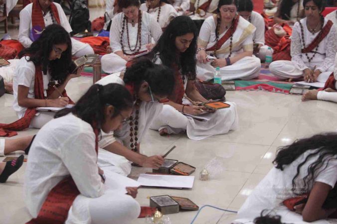 Adheenavasis and Inner Awakening Convention delegates setting up their Pooja Kits to offer their worship at the Lotus Feet of HDH Bhagavan Sri Nithyananda Paramashivam