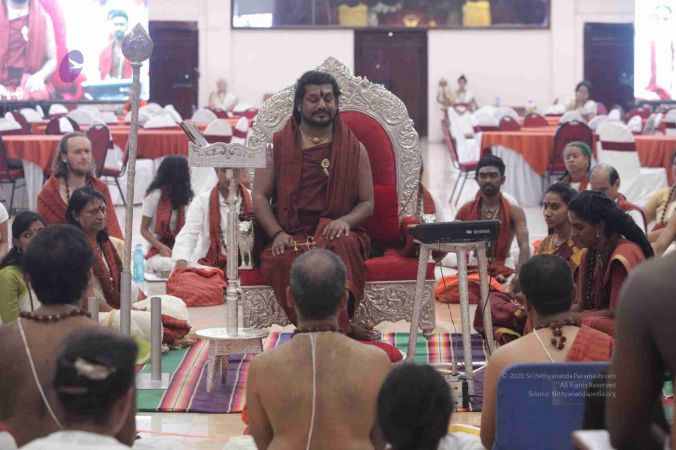 I welcome all of you with My love and respects. I welcome all the Sarvajna Peetha Yajamans, Nithya Satsangis, Sri Mahants, Mahants, Kotharis, Thanedars, devotees, disciples, visitors, YouTube Subscribers, sitting with us through Nithyananda TV and Facebook Live on 100s of Aadheenavasis channels, YouTube Live and through 2-way Video Conferencing having Nayana Deeksha. I welcome all of you with My love and respects.