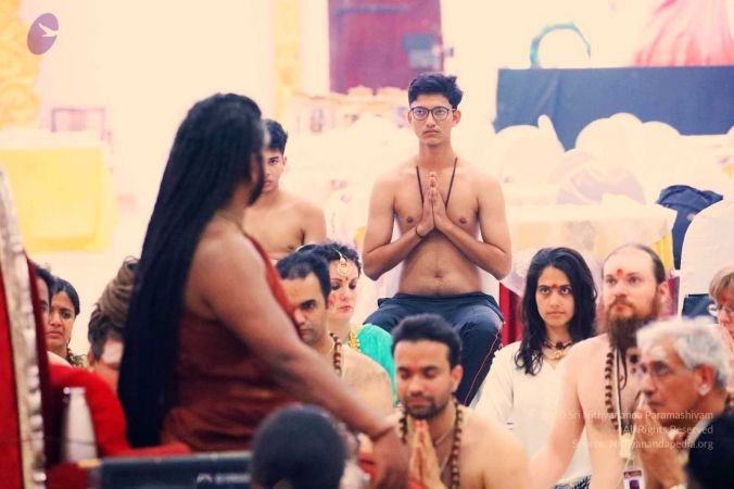 HDH Nithyananda Paramashivam in "CHIN MUDRA" blessing Mahasadashivoham delegates