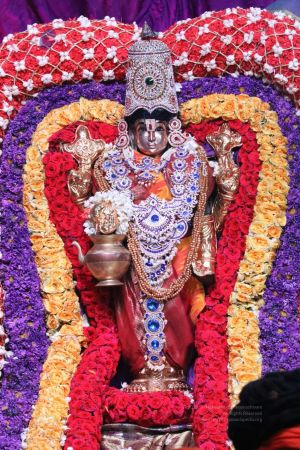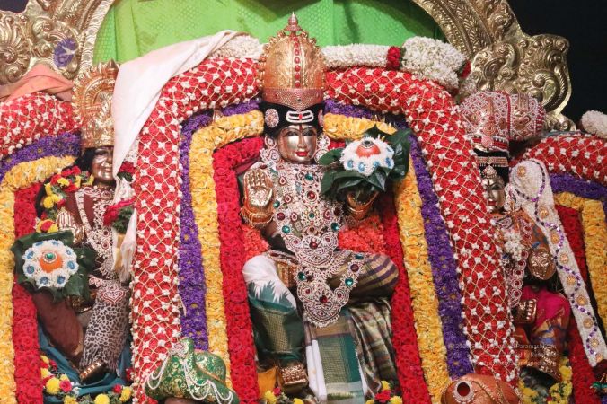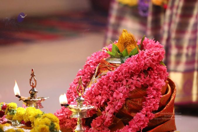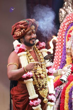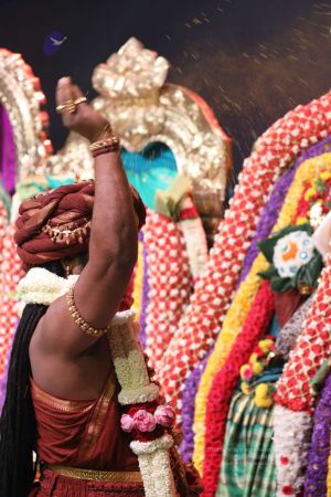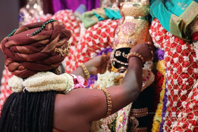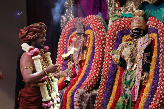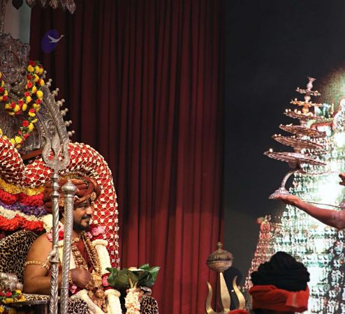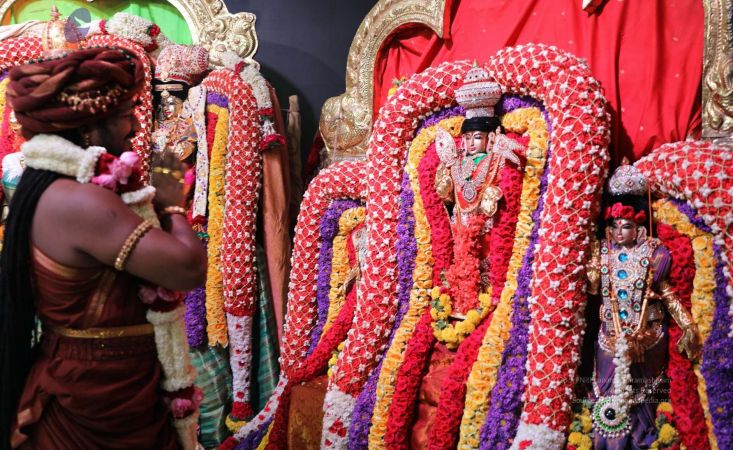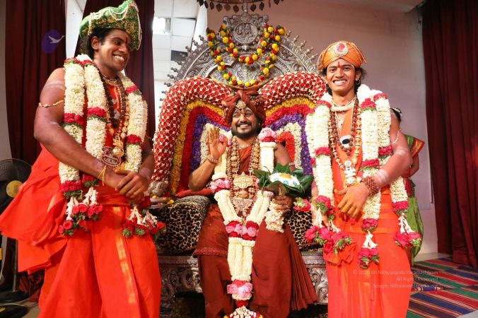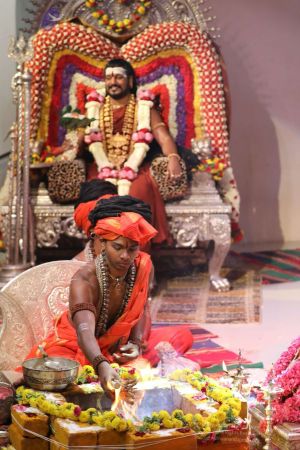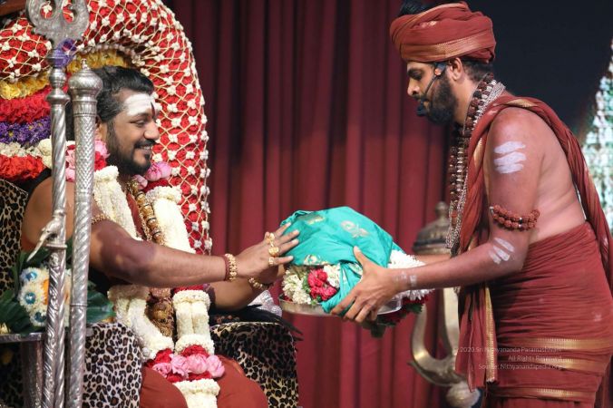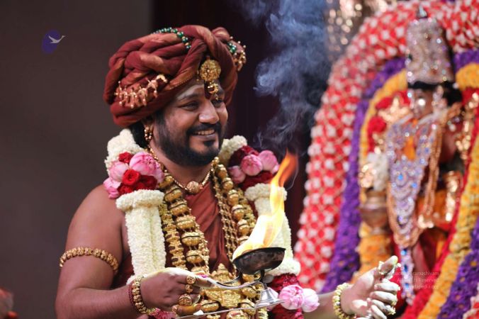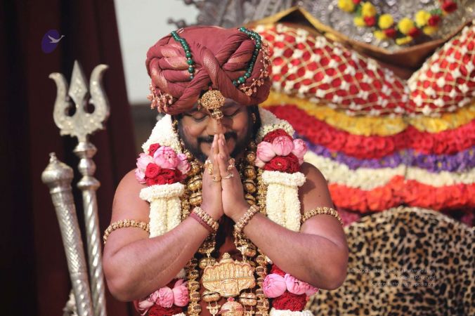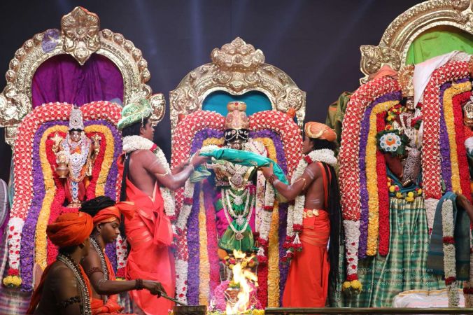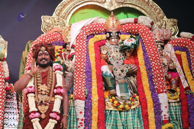Meenakshi Thirukalyanam - The celestial marriage of Nithyanandeshwara Paramashiva and Nithyanandeshwari Parashakti, in their incarnations as Lord Sundareshwara and Goddess Meenakshi re-enacted by temple priests. This occassion was celebrated in a grand way at Nithyananda Peetham, Bengaluru Aadheenam, in the traditional Pandya style.