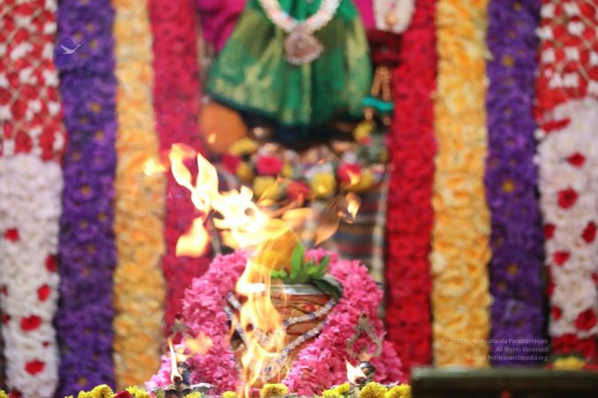 HDH Bhagavan Sri Nithyananda Paramashivam offering Aarati to Devi Meenakshi