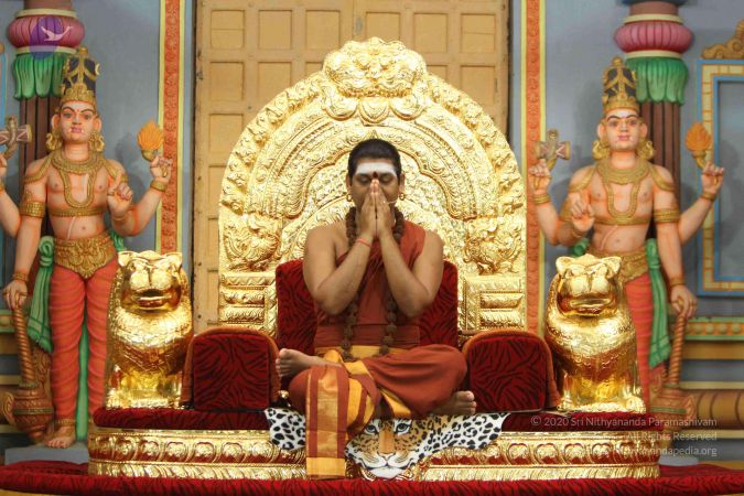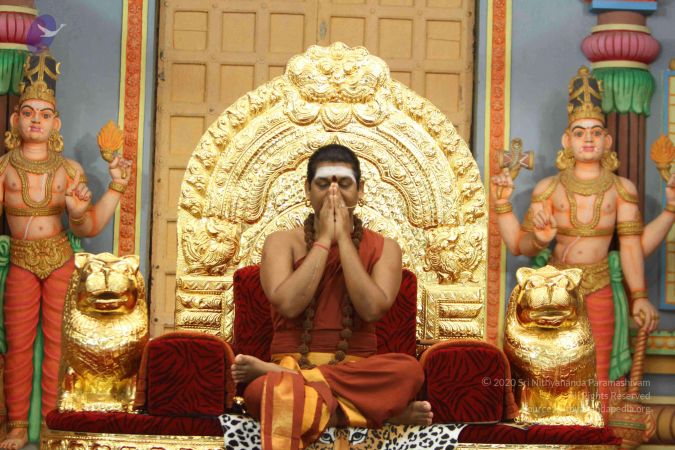 I welcome all the devotees, disciples, visitors, viewers, Shrimahants, Mahants, Kotharis, Thanedars, sitting with us all over the world through Nithyananda TV, Sadhna TV, two-way video-conferencing having Nayana Deeksha.