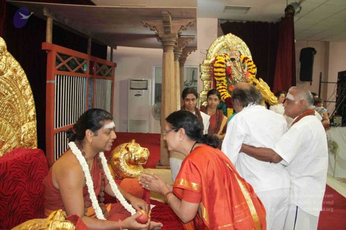 Nithyanandeshwara Samaarambhaam Nithyanandeshwari Madhyamaam | Asmath Aachaarya Paryanthaam Vandhey Guru Paramparaam ||