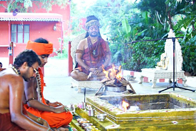 His Divine Holiness lights Aarati during Spiritual Alchemy Process - Aushadha Preparation - an esoteric science from the Siddha tradition which is used to achieve the state, space, powers of Paramashiva, and gain access to the 25 states of consciousness.