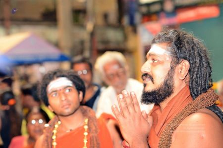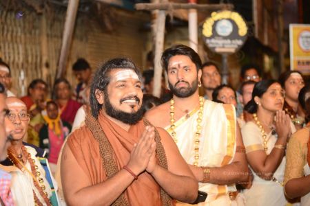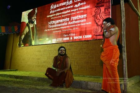 His Divine Holiness HDH Sri Nithyananda Paramashivam in Tiruvannamalai Aadheenam with his billboard
