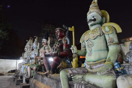 His Divine Holiness with the Navagrahas at the Mariamman Temple in Thiruvannamalai