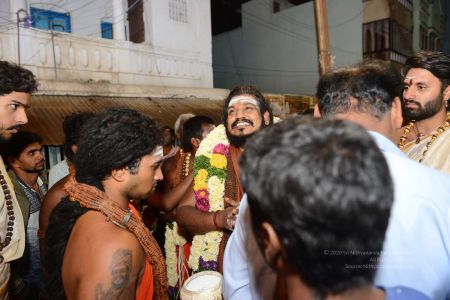 His Divine Holiness blessing devotees at the Panchamurti Procession of the Annamalaiyar Temple in Thiruvannamalai
