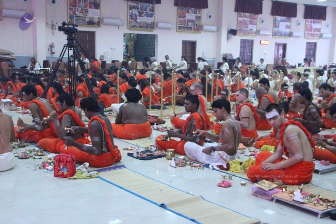 Adheenavasis and delegates of Inner Awakening Convention offering their gratitude at the Master's Feet- Pratyaksha Pada Pooja